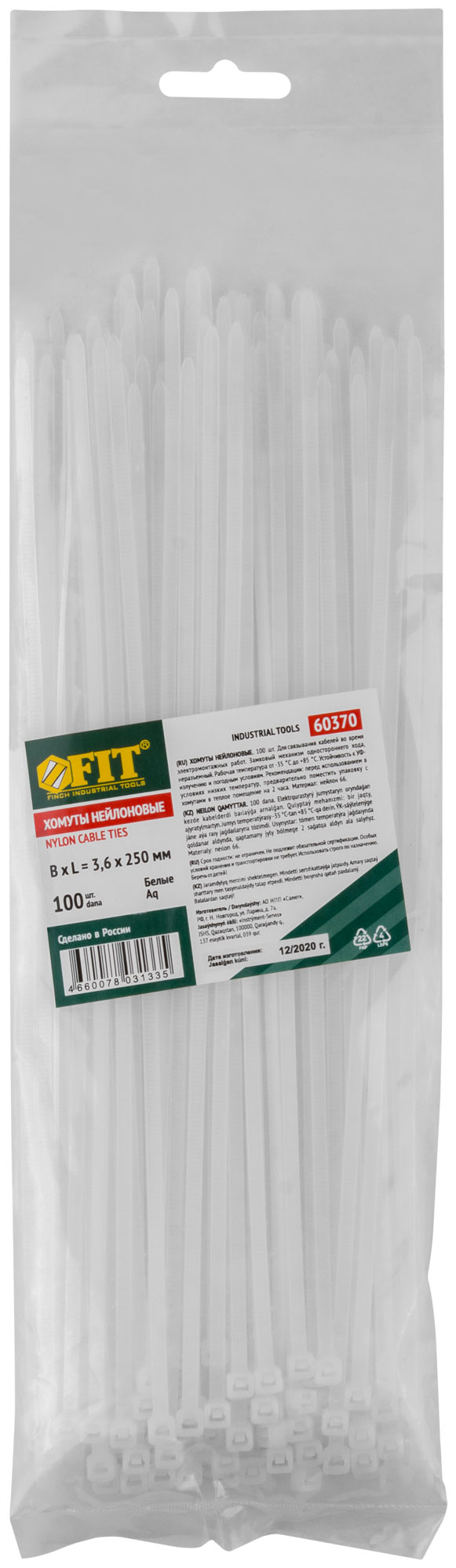 Хомуты нейлоновые для проводов, белые 100 шт., 3,6х250 мм
