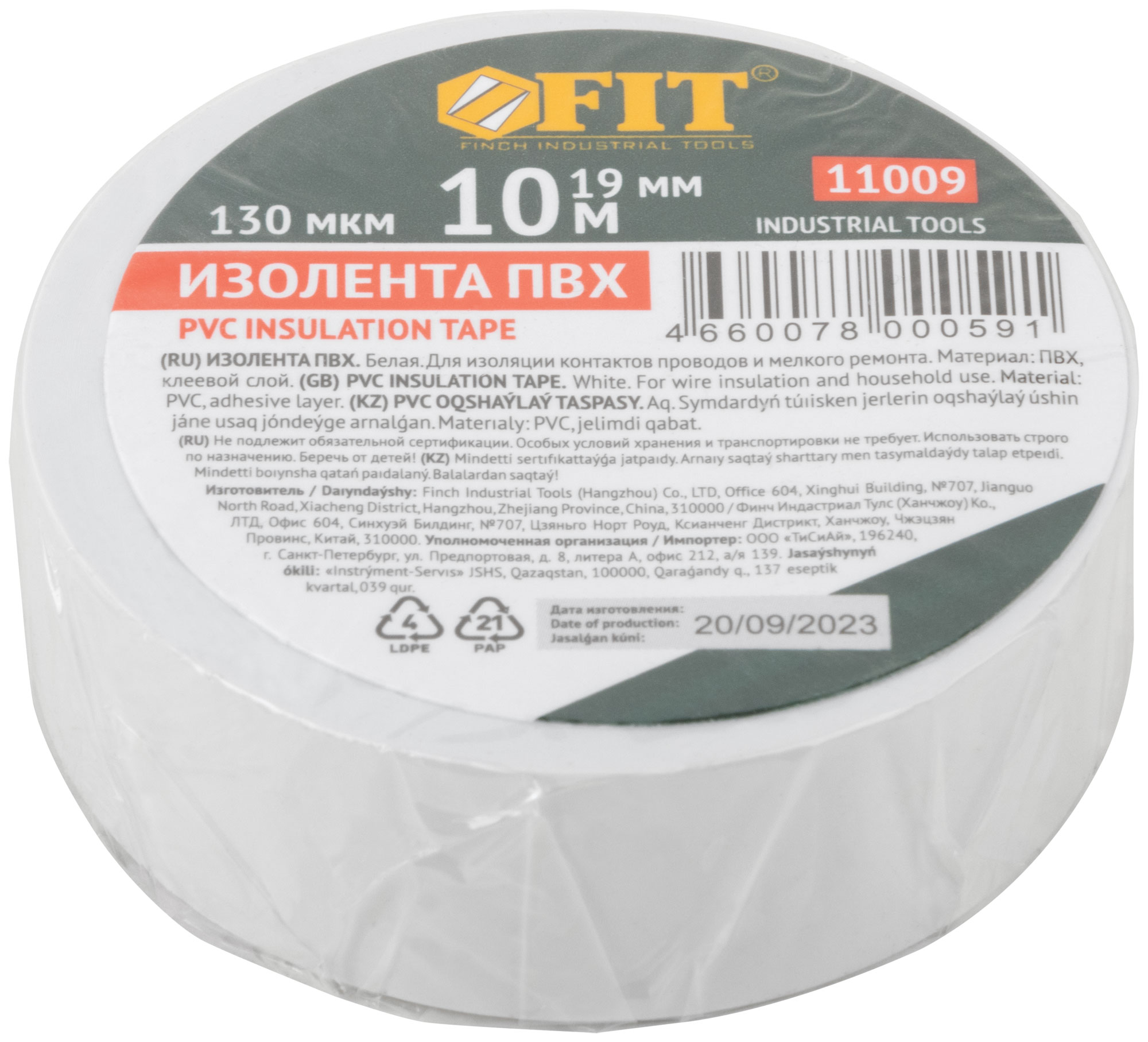 Используется при температуре не ниже -20°C. Для изоляции электропроводов и мелкого ремонта. (19 мм х 0,13 мм х 10 м )
