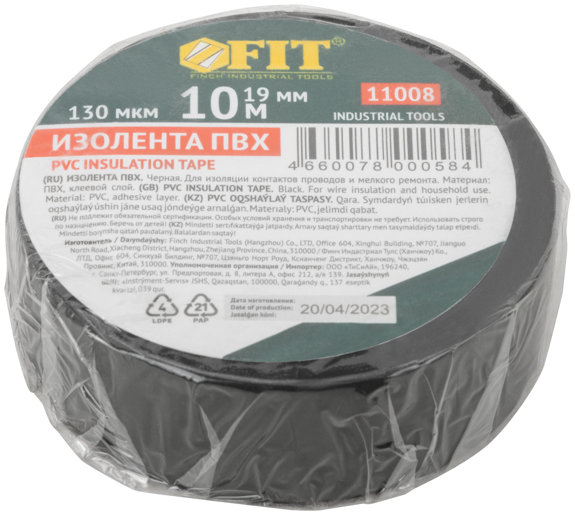 Используется при температуре не ниже -20°C. Для изоляции электропроводов и мелкого ремонта. (19 мм х 0,13 мм х 10 м )