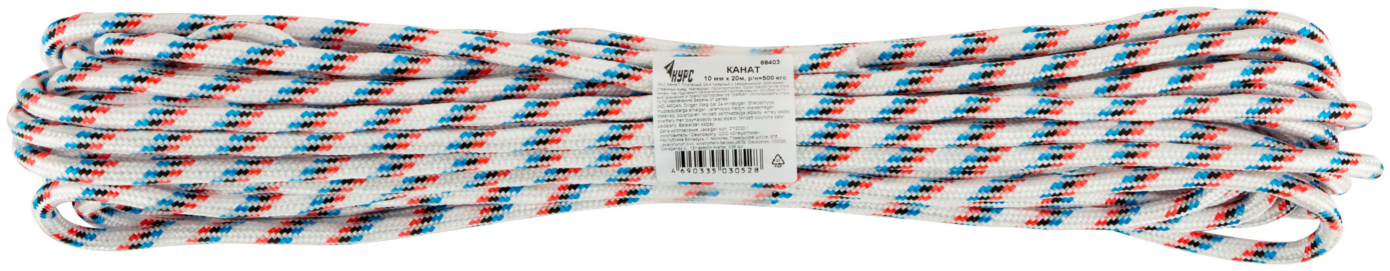 Канат полипропиленовый 24-х прядный с сердечником 10 мм х 20 м, р/н= 500 кгс