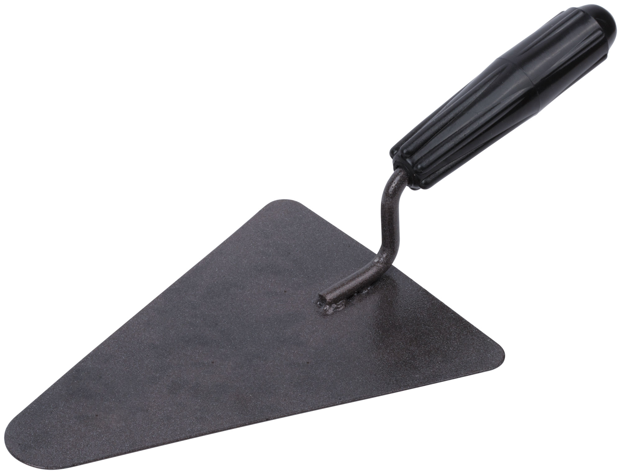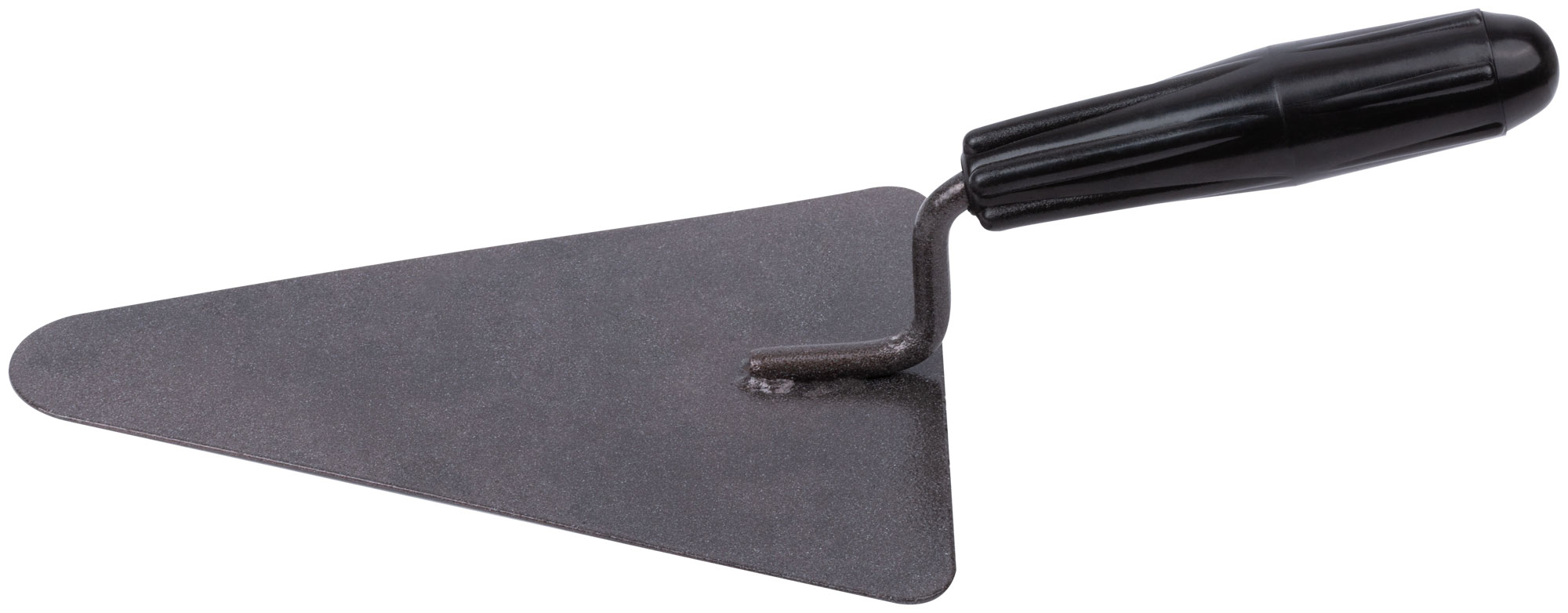 Кельма бетонщика КБ. «Треугольник». Для нанесения строительных смесей. Материал: инструментальная сталь с полимерным покрытием, пластиковая ручка.