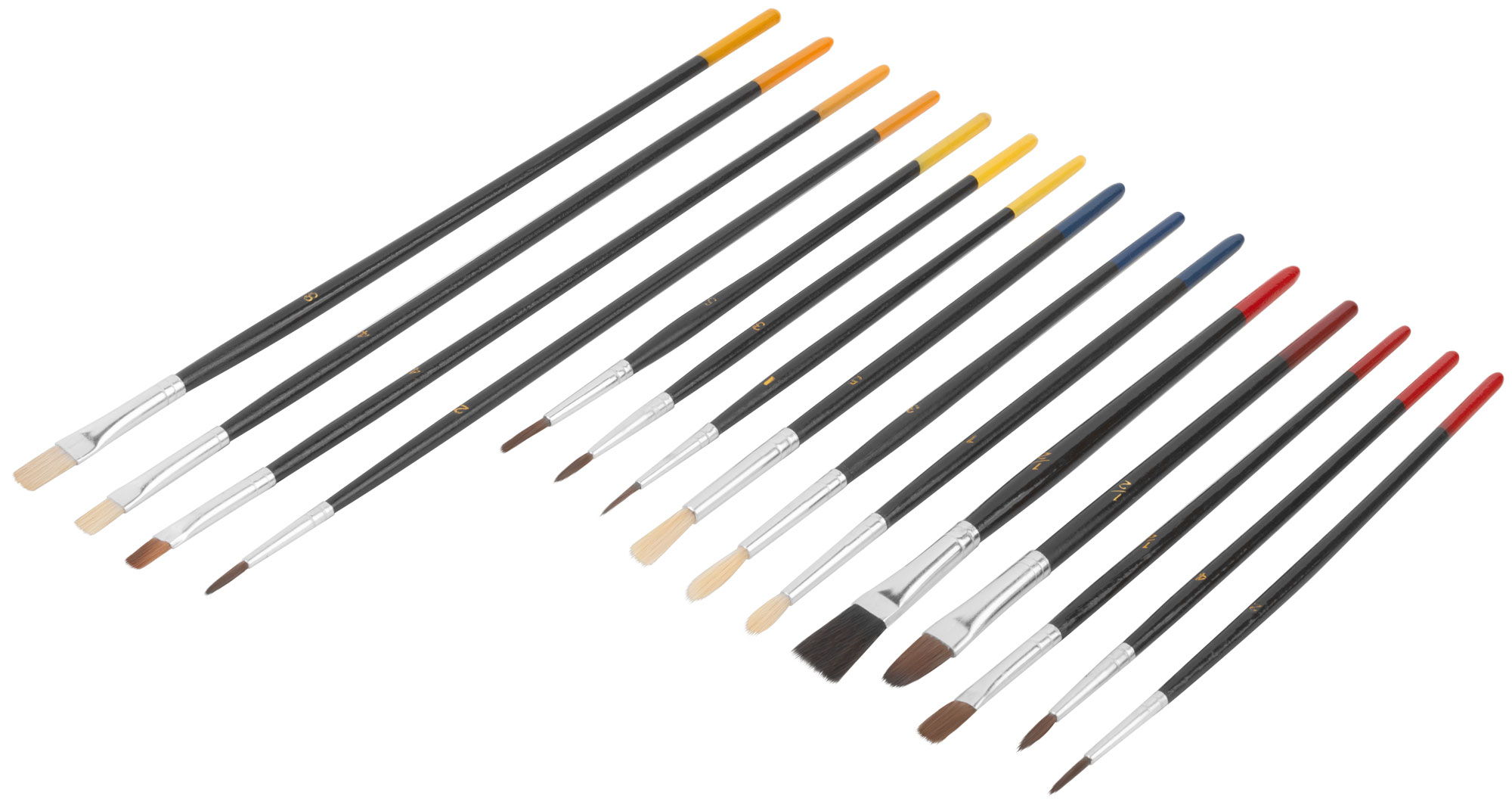 Кисти художественные, натуральная щетина, деревянная ручка, плоские и круглые, набор 15 шт.