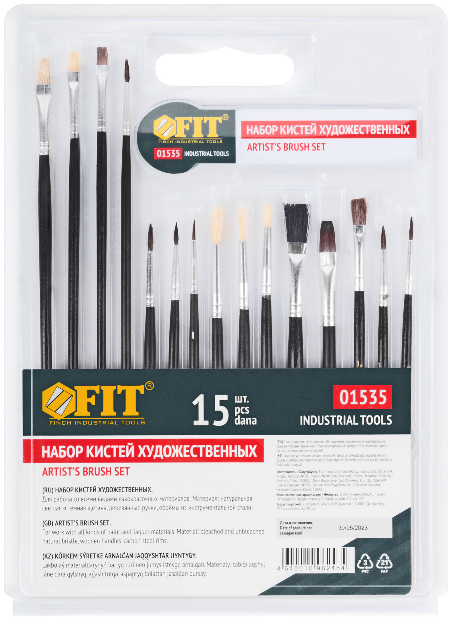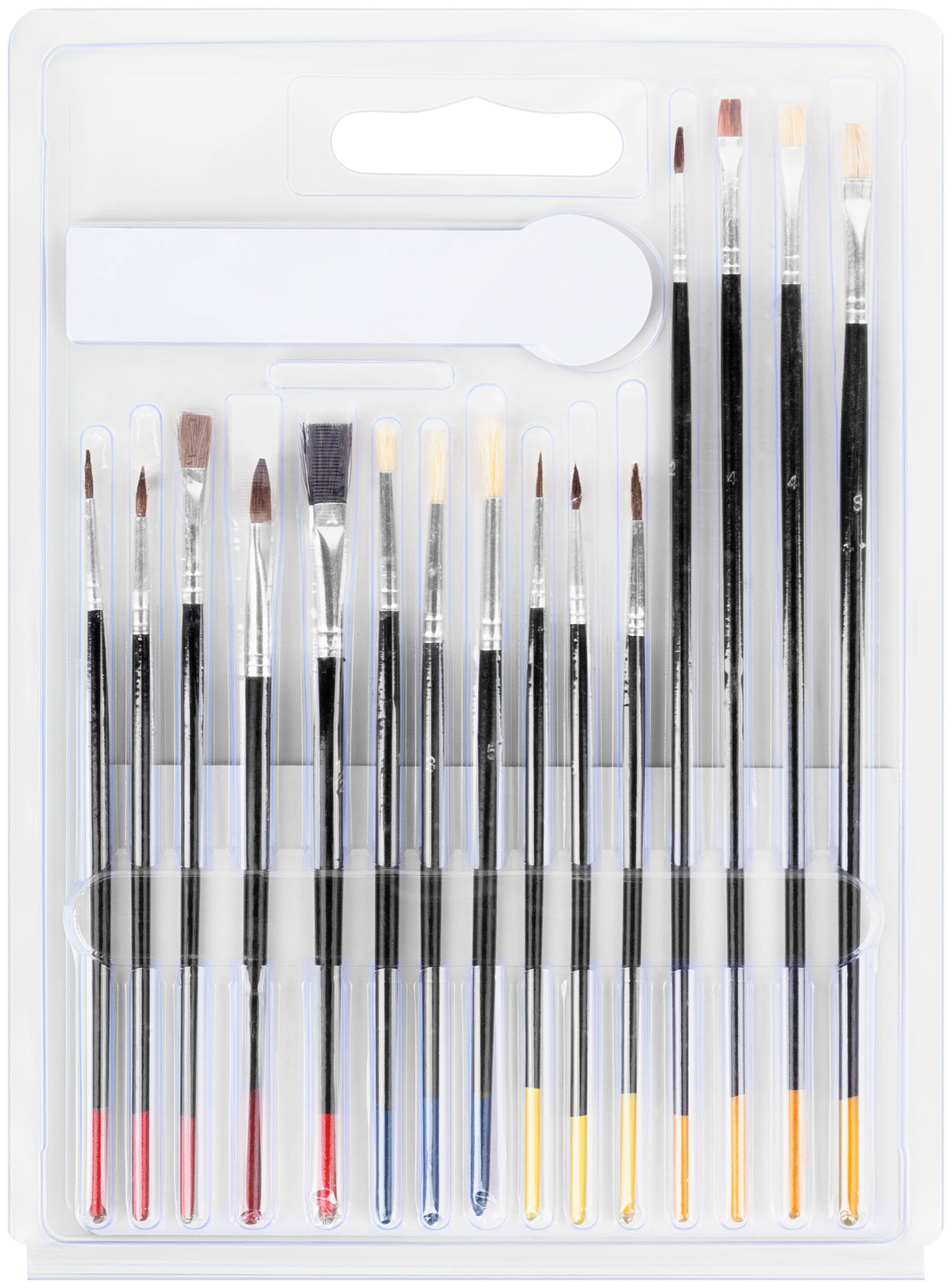 Набор 15 штук. Плоские и круглые. Для работы со всеми видами лакокрасочных материалов. Материал: натуральная светлая щетина, деревянные ручки. Упаковка: двойной блистер.