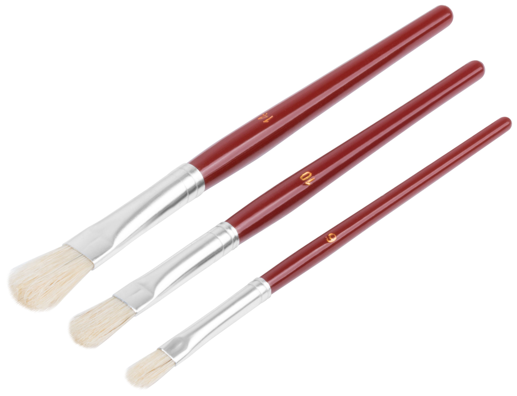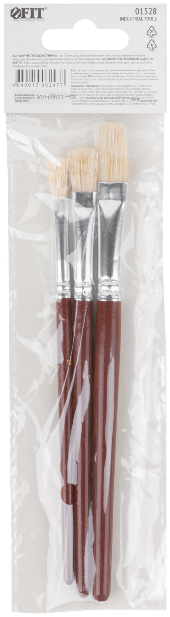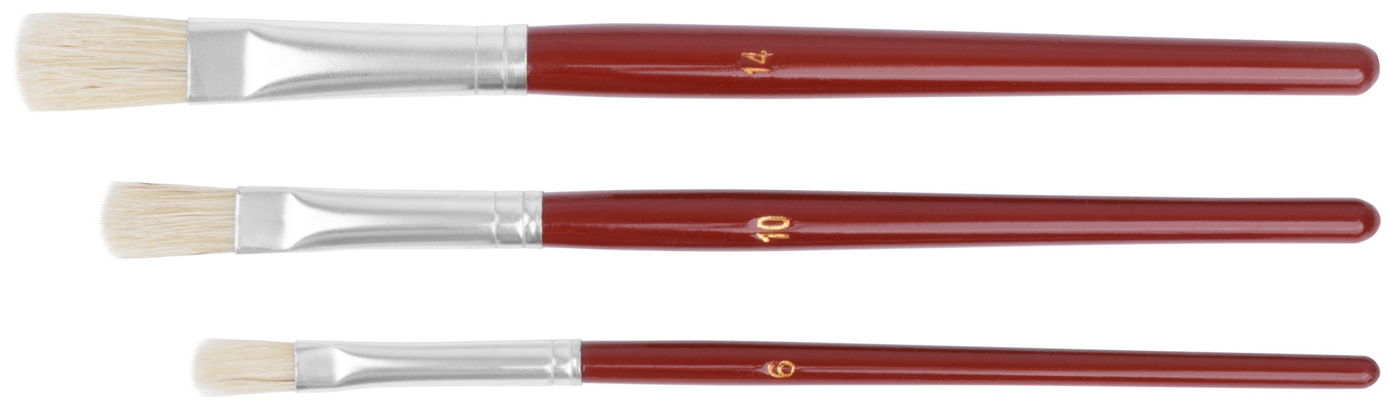 Набор 3 штуки. Плоские. Для работы со всеми видами лакокрасочных материалов. Материал: натуральная светлая щетина, деревянные ручки. Упаковка: п/э пакет с картонным подвесом.