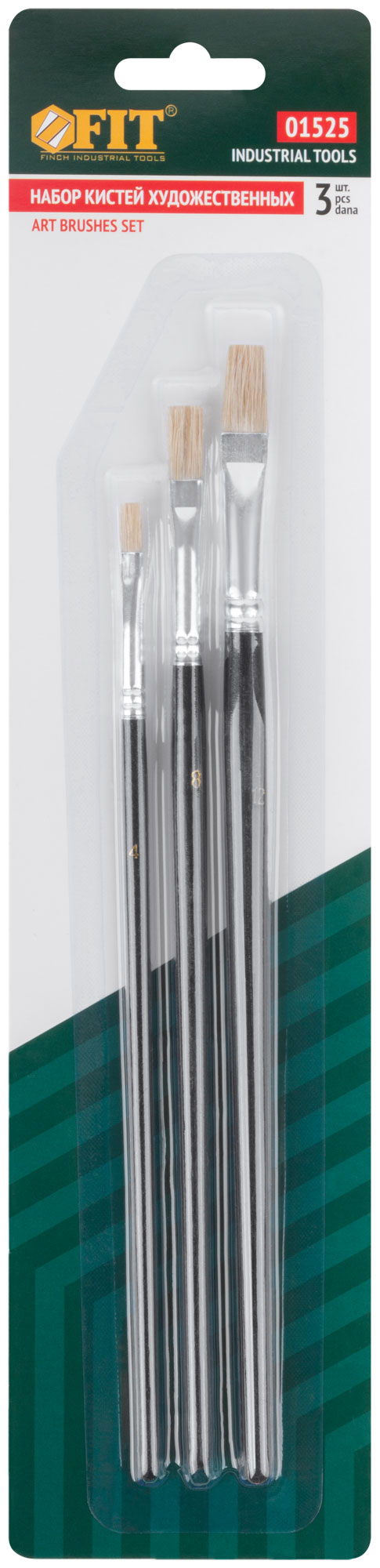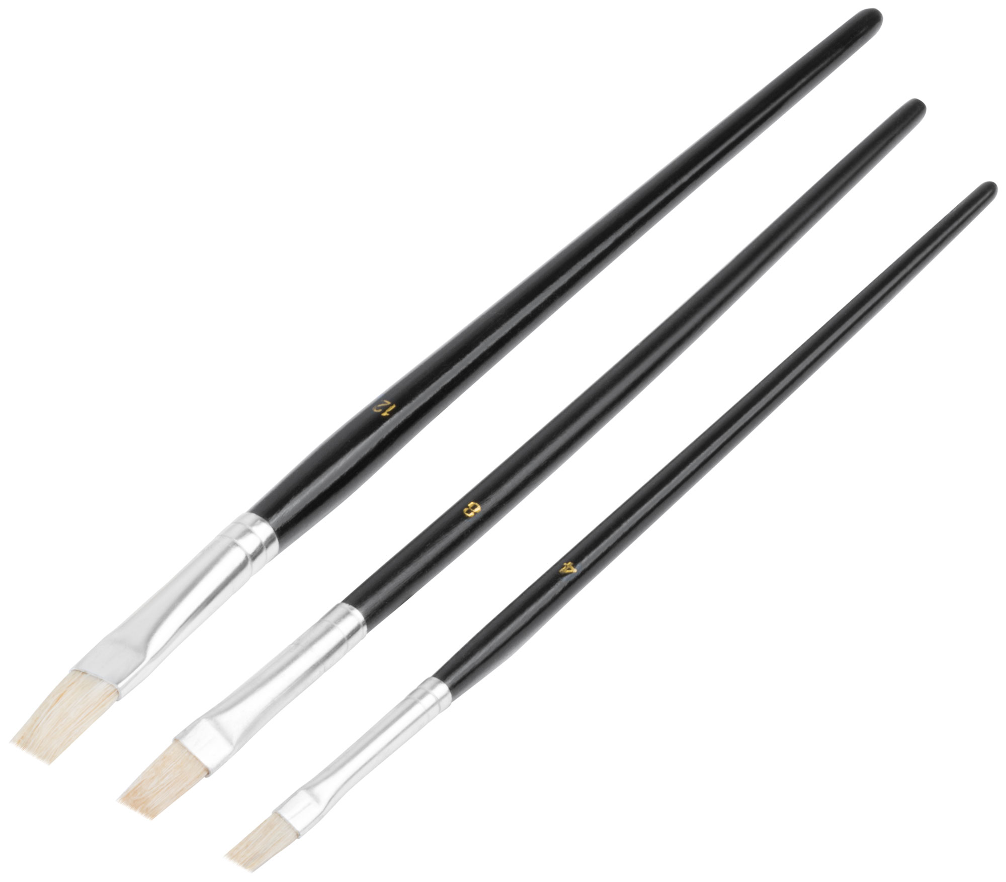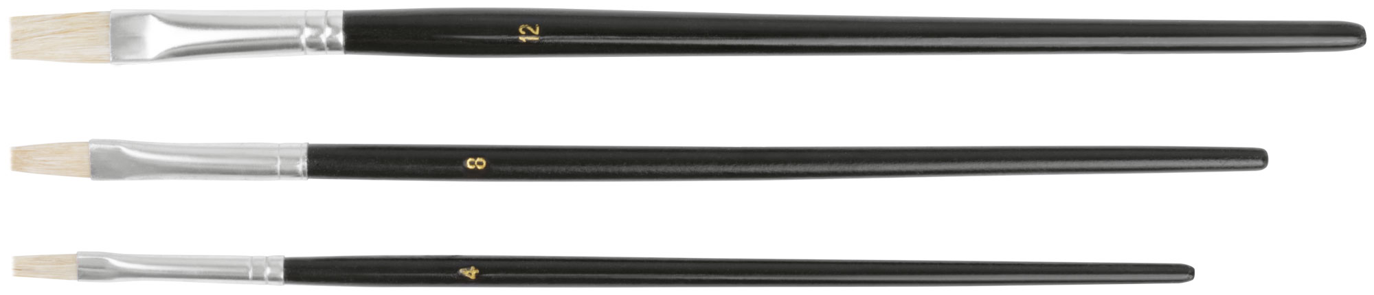 Кисти художественные, натуральная щетина, деревянная ручка, плоские, набор 3 шт.