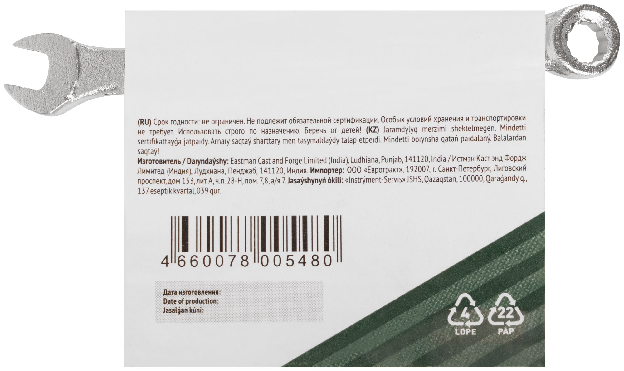 Ключ комбинированный "Хард", хромированное покрытие 6 мм