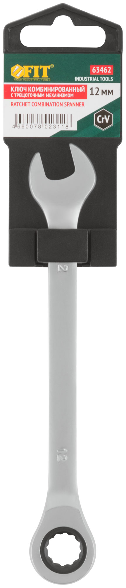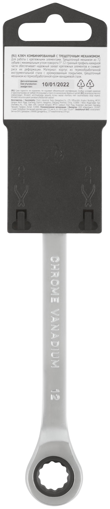 Ключ комбинированный трещоточный, CrV реверсивный механизм 12 мм