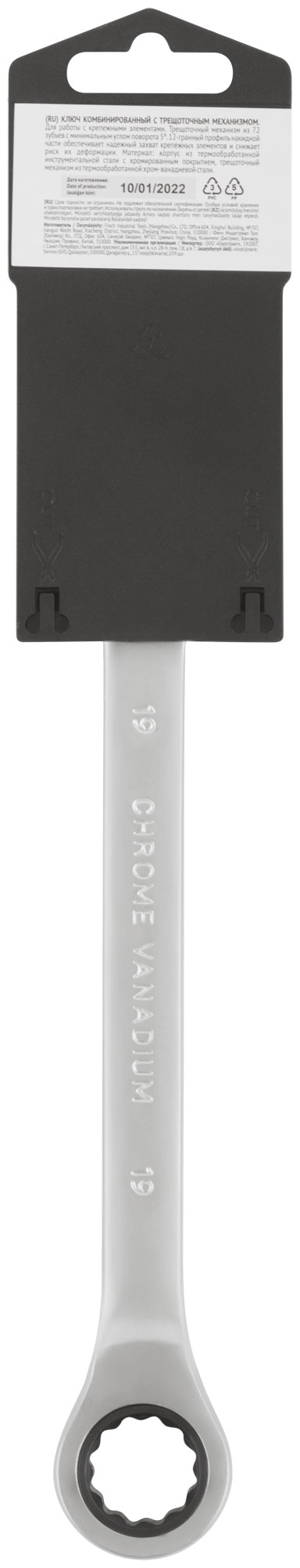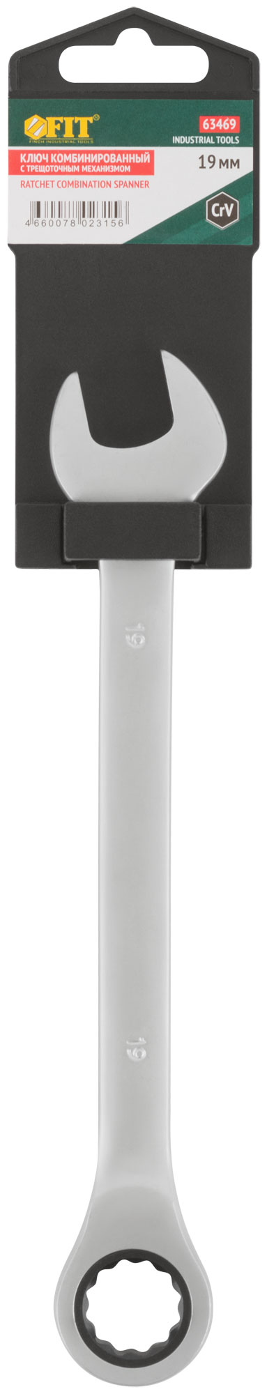 Ключ комбинированный трещоточный, CrV реверсивный механизм 19 мм