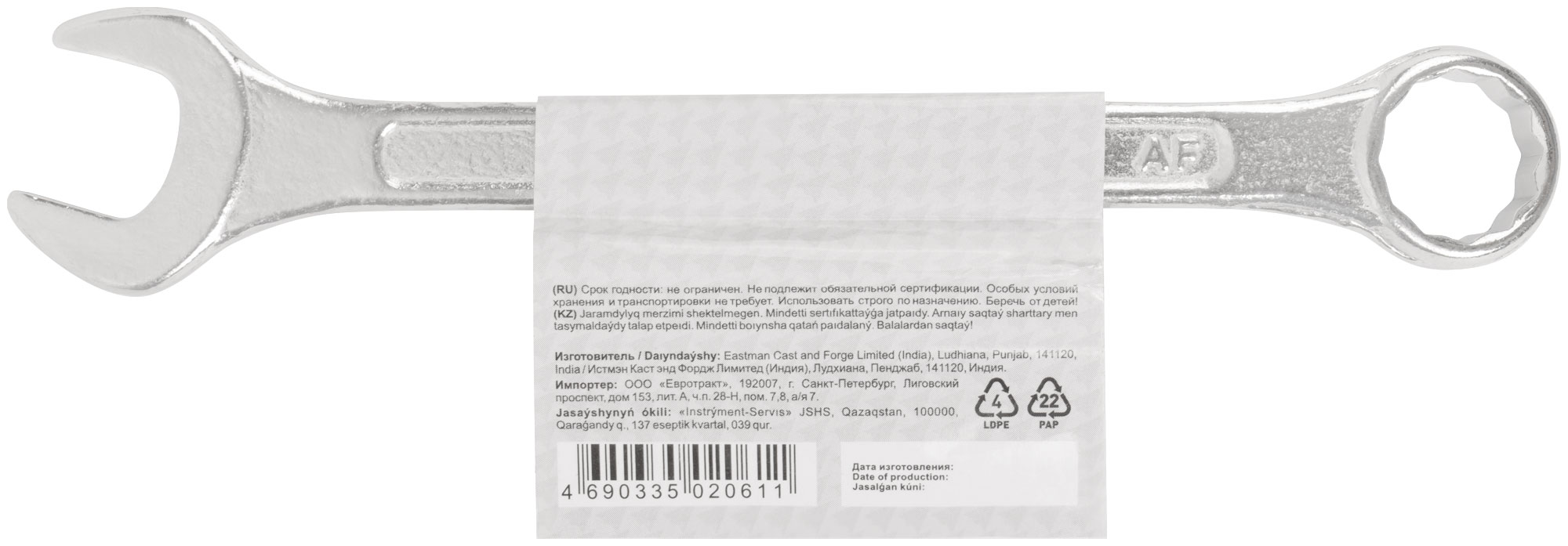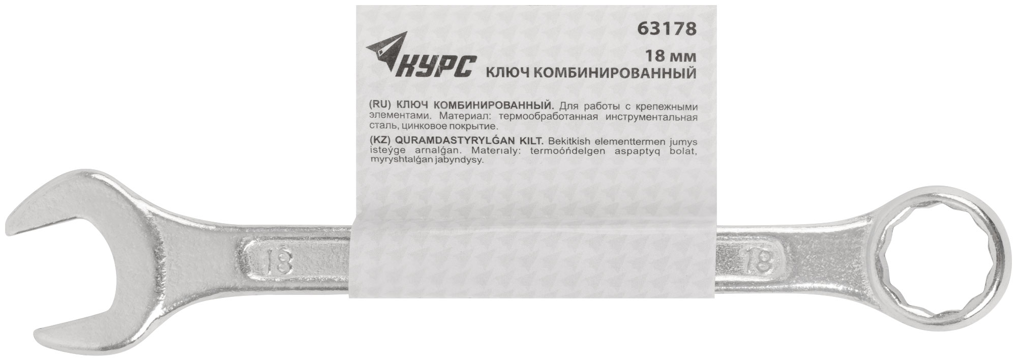 Ключ комбинированный, цинковое покрытие 18 мм