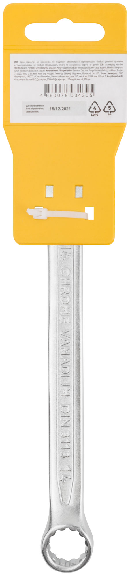 Ключ комбинированный усиленный "Гранд", CrV, холодный штамп 14 мм