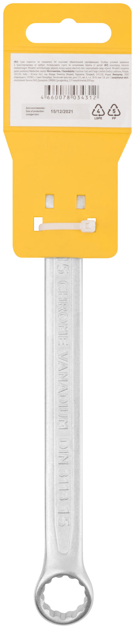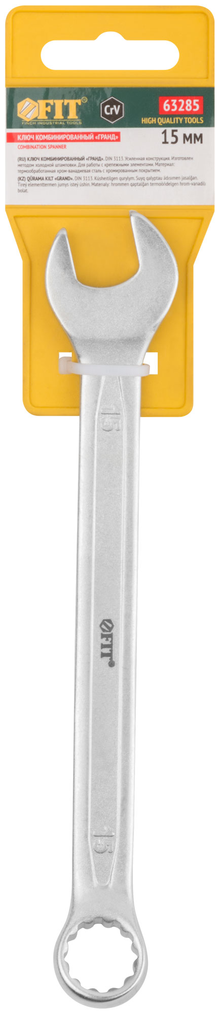 Ключ комбинированный усиленный "Гранд", CrV, холодный штамп 15 мм