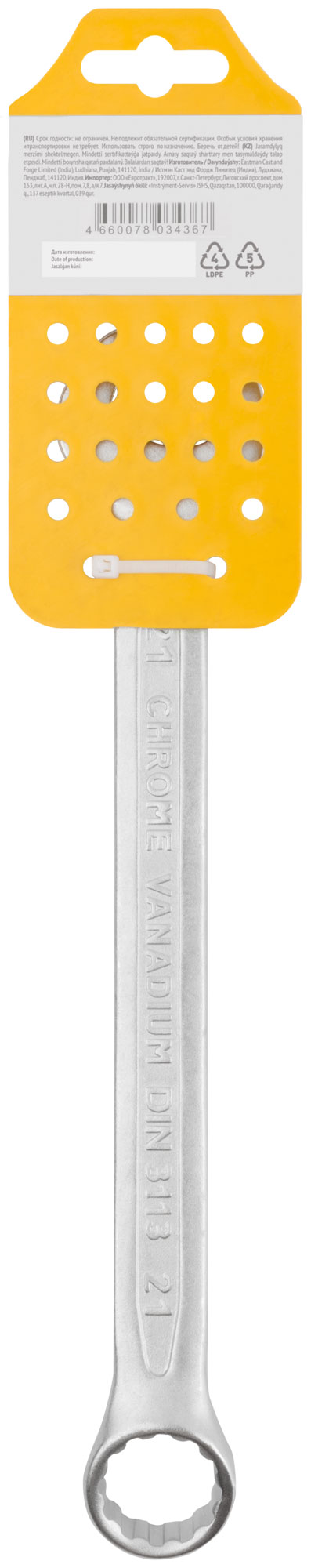Ключ комбинированный усиленный "Гранд", CrV, холодный штамп 21 мм