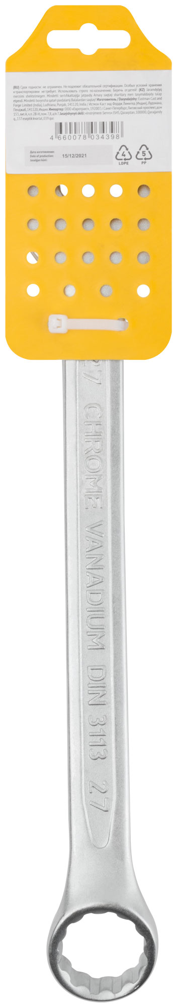 Ключ комбинированный усиленный "Гранд", CrV, холодный штамп 27 мм