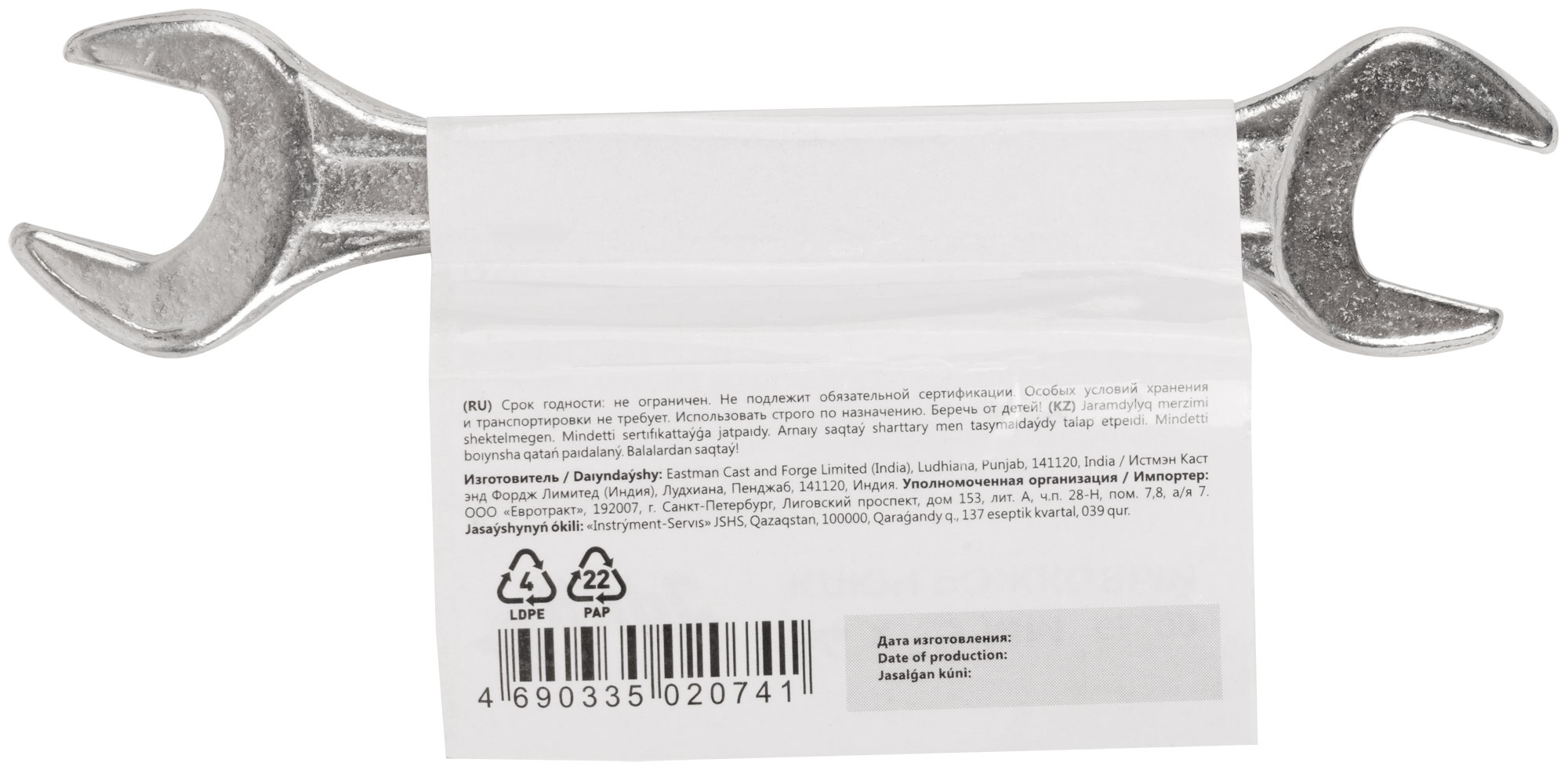 Ключ рожковый, хромированное покрытие 14х15 мм