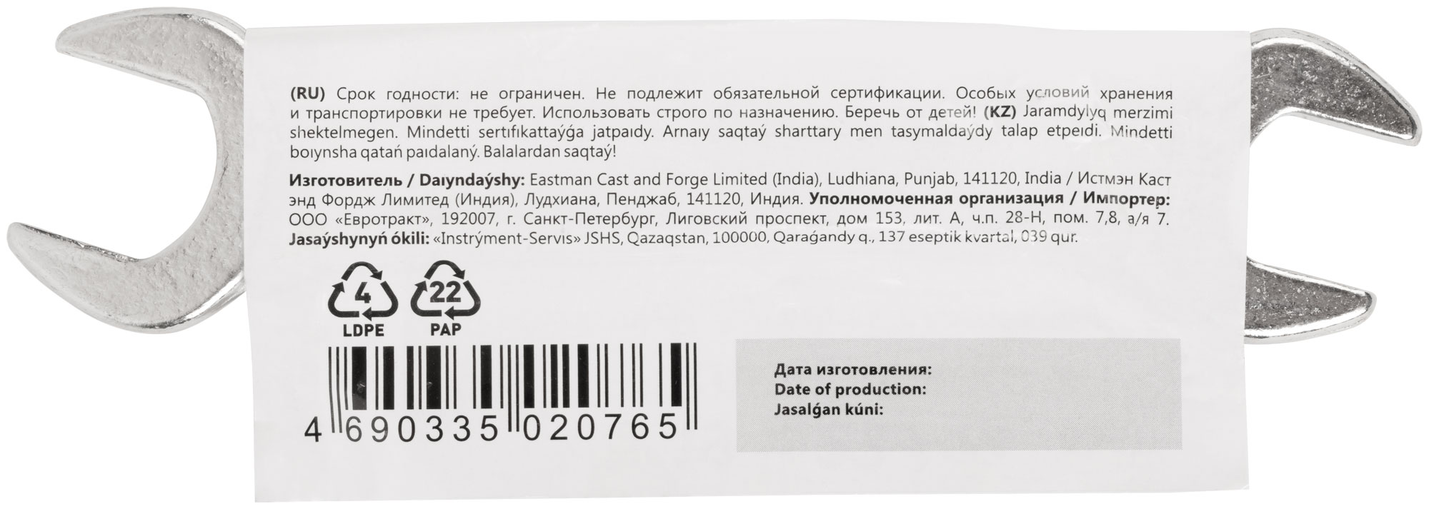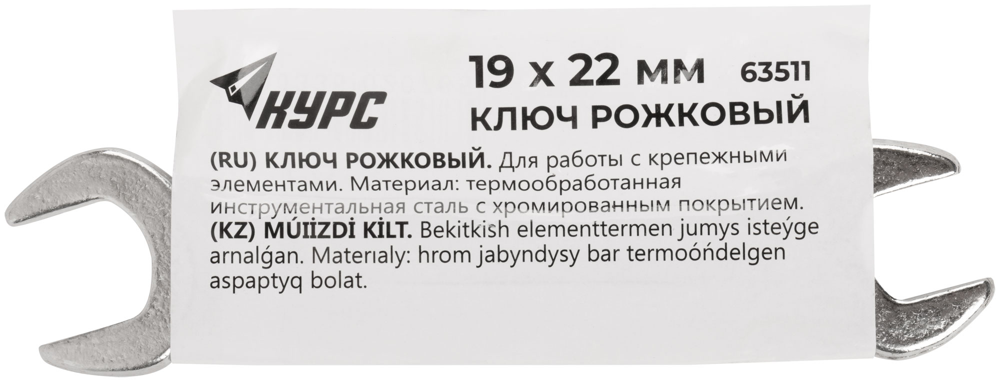 Ключ рожковый, хромированное покрытие 19х22 мм