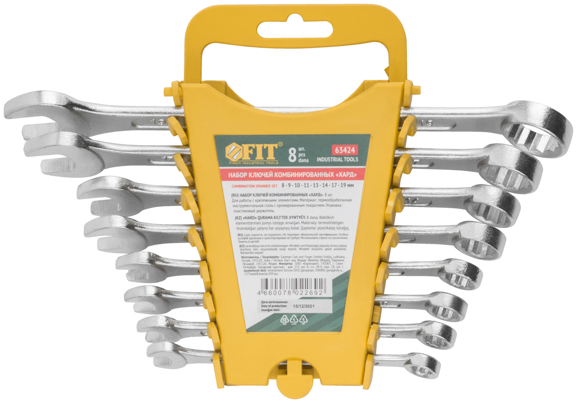 Ключи комбинированные в пластиковом держателе "Хард", набор 8 шт. ( 8-19 мм )