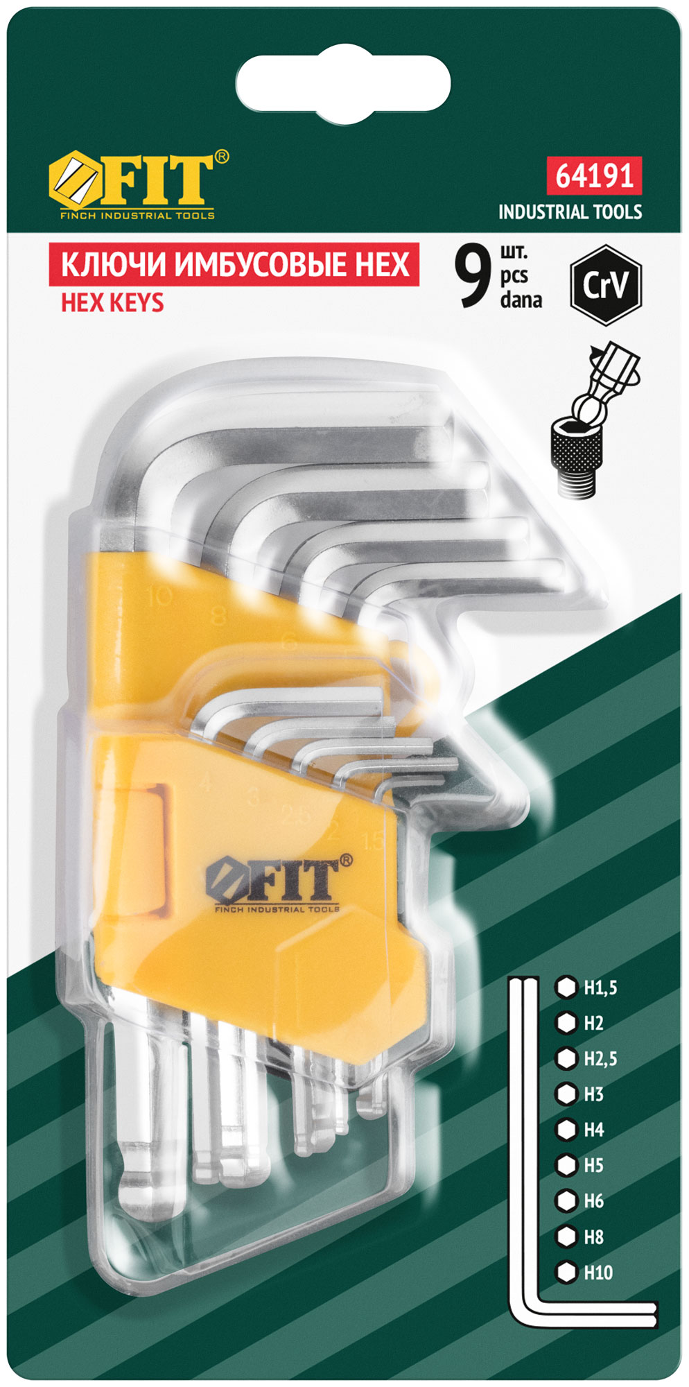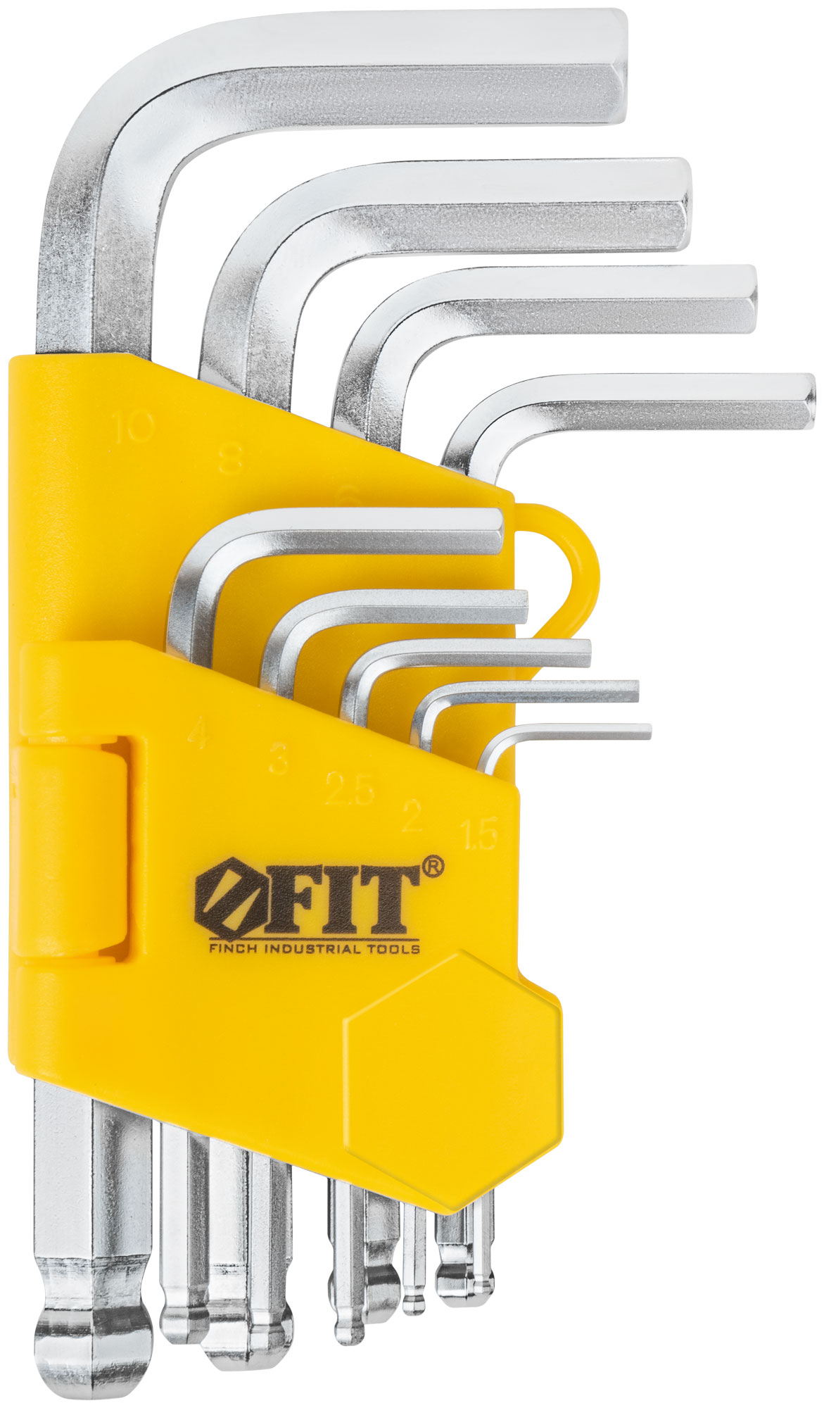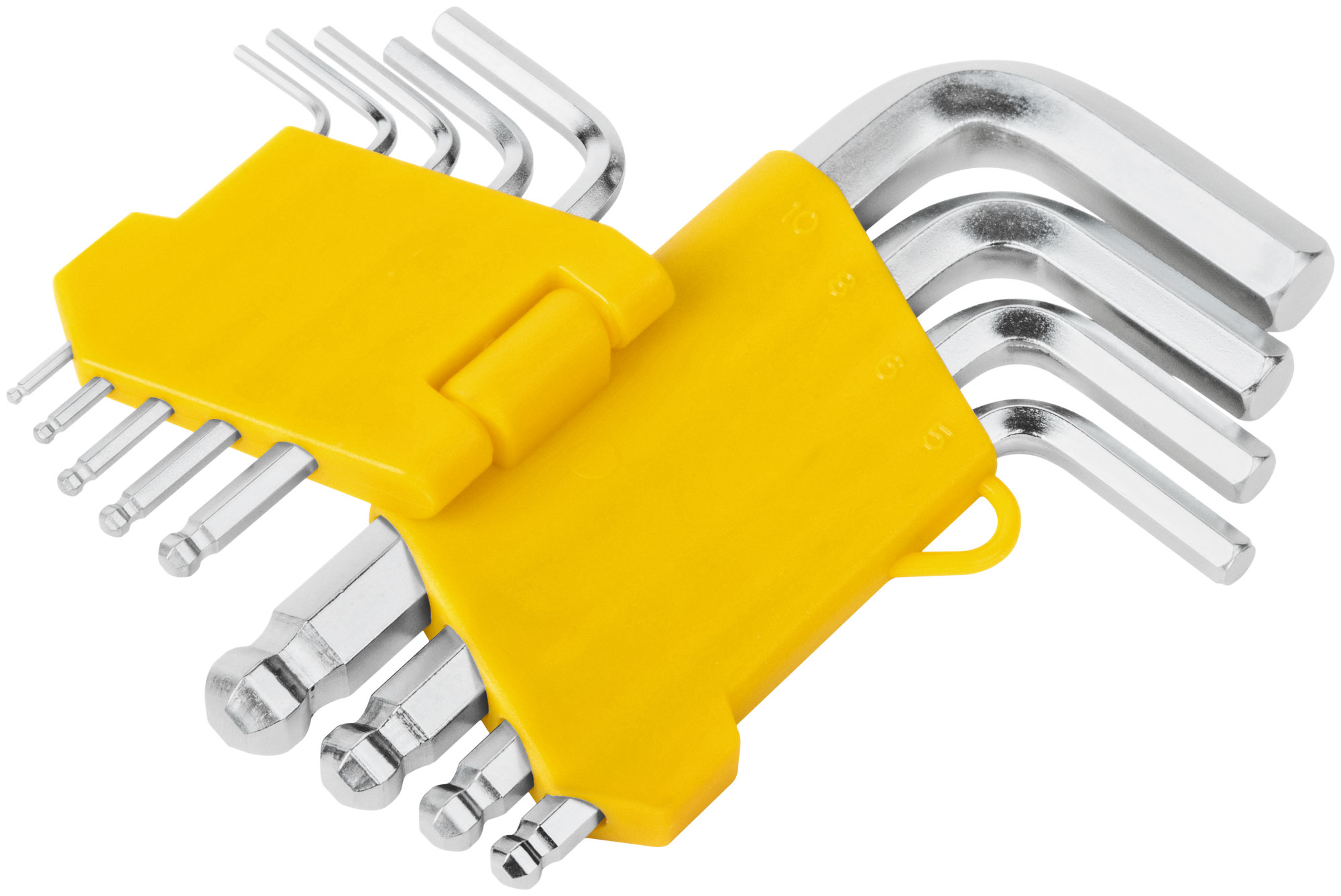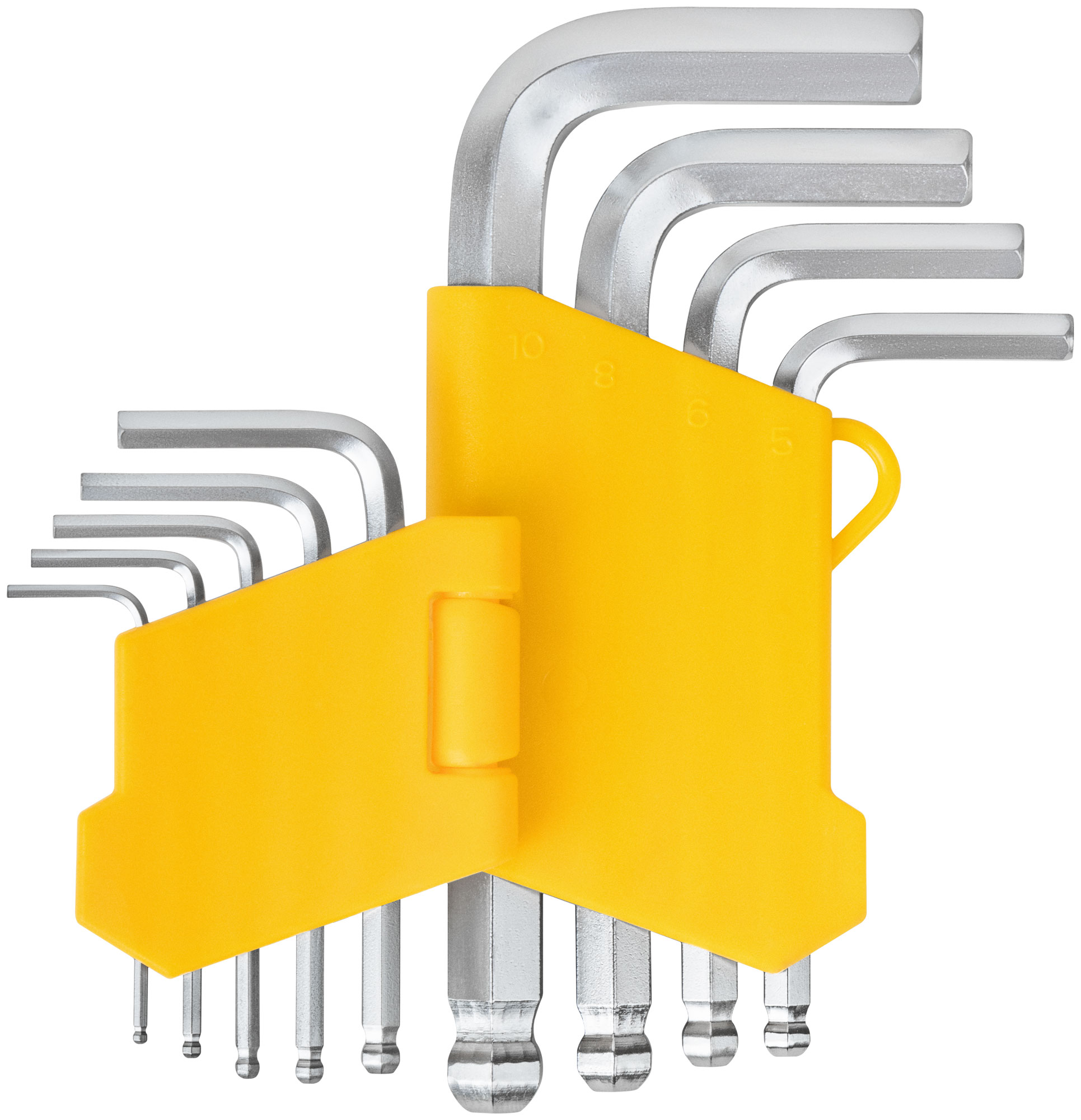 Ключи шестигранные, CrV сталь, 9 шт., 1,5-10 мм, с шаровым наконечником, в пластиковом держателе
