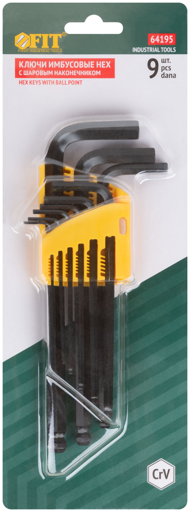 Ключи шестигранные HEX средние с шаром CrV 9 шт.( 1,5-10 мм )