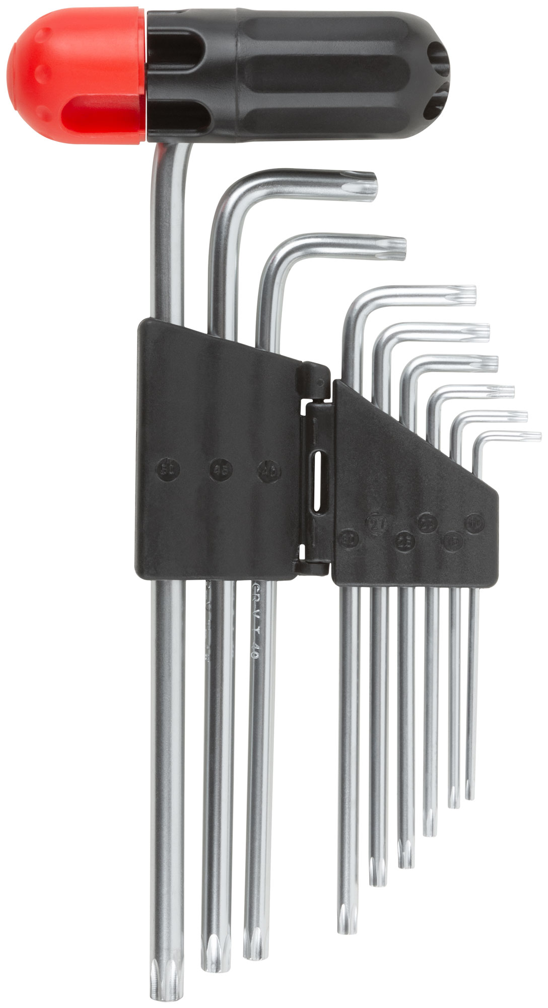 Ключи TORX 9 шт. CrV Т10-Т50, с отверстием, длинные, с пласт.Т-обр.ручкой, Профи