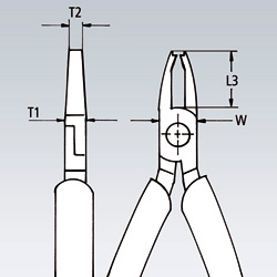 Кончики клещей оснащены специальной режущей частью в форме выемки, которая может перекусывать мягкую проволоку диаметром сечения до ⌀ 1,0 мм.