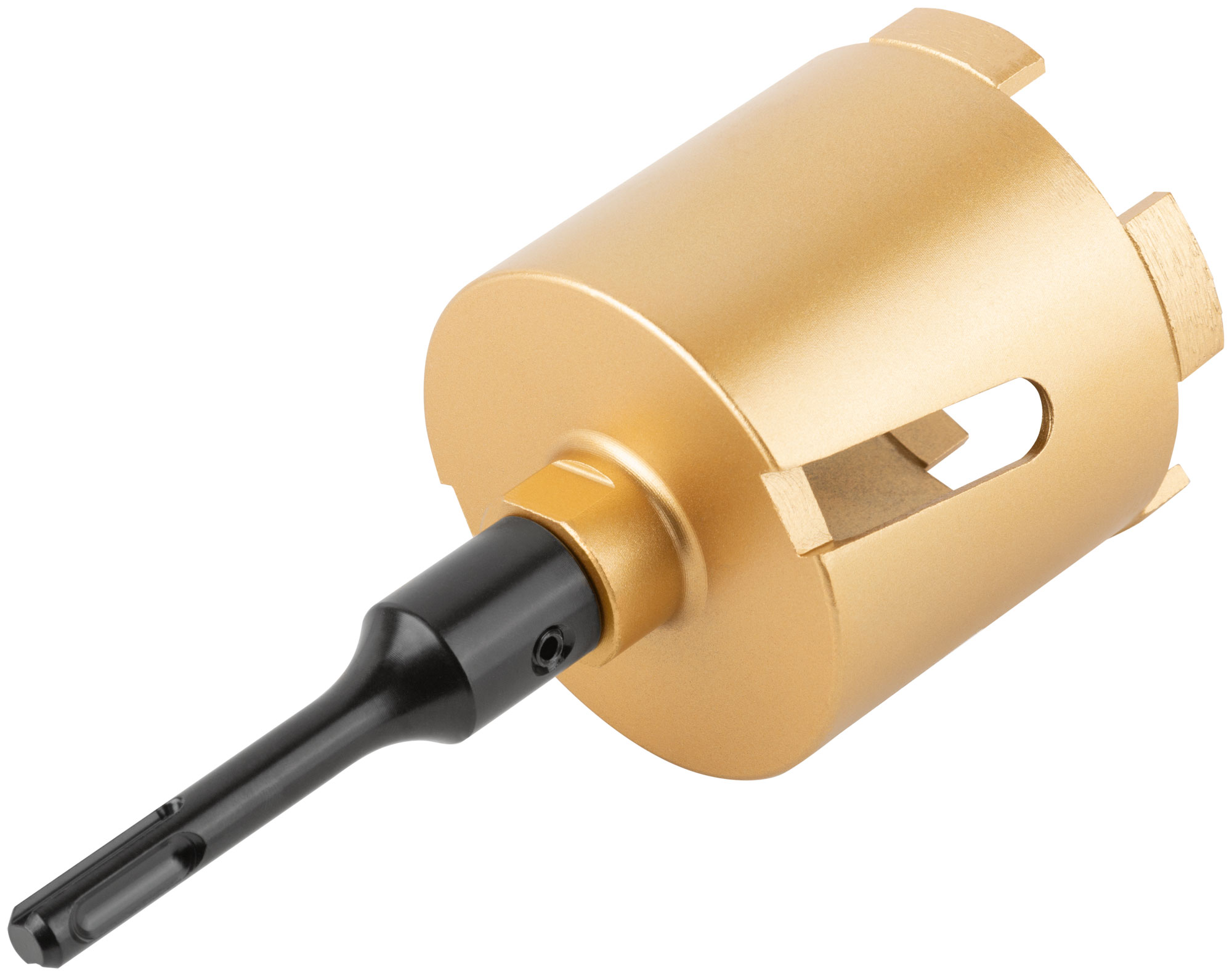 Коронка алмазная с центрирующим сверлом и хвостовиком SDS-PLUS. Для безударного сверления отверстий под монтажные коробки в бетоне и кирпиче. Для работы с водяным охлаждением. Материал: корпус из инструментальной стали, хвостовик и центрирующее сверло из легированной стали, режущая кромка содержит порошок из технических алмазов. Упаковка: пластиковый подвес.