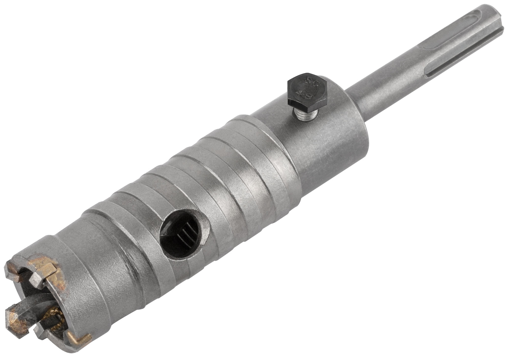 Хвостовик 110 мм. В сборе. Для перфоратора. Для ударного сверления отверстий в бетонных, кирпичных и каменных стенах. Материал: хвостовик и центрирующее сверло легированная инструментальная сталь с добавлением хрома; корпус инструментальная сталь; твердосплавные резцы из карбида вольфрама. Упаковка: пластиковый подвес.