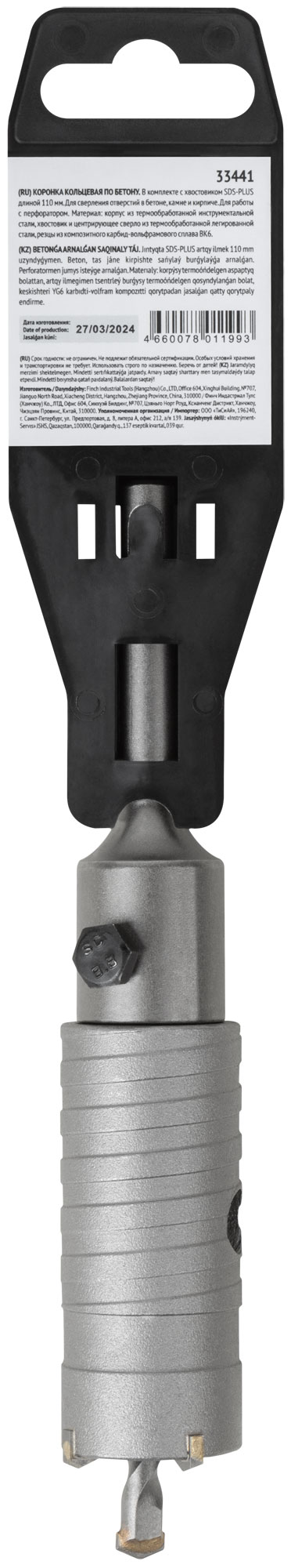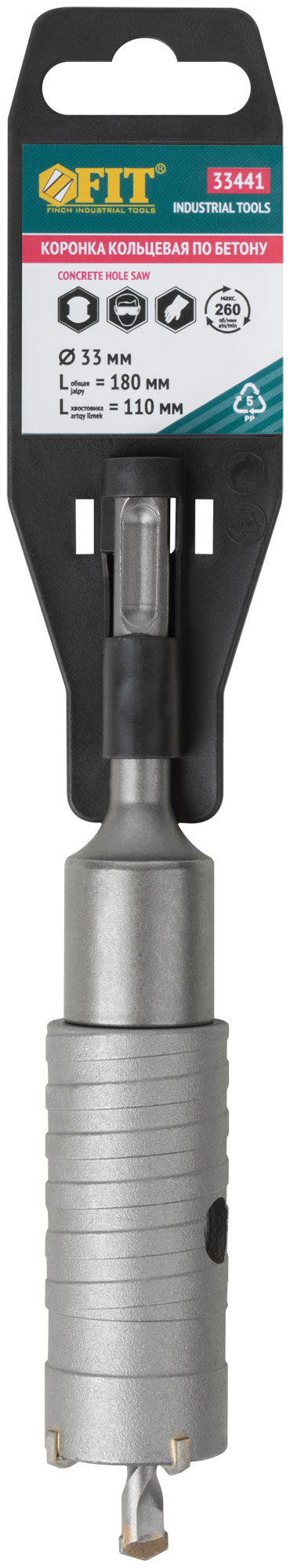 Коронка кольцевая по бетону, хвостовик 110 мм в сборе, 33 мм