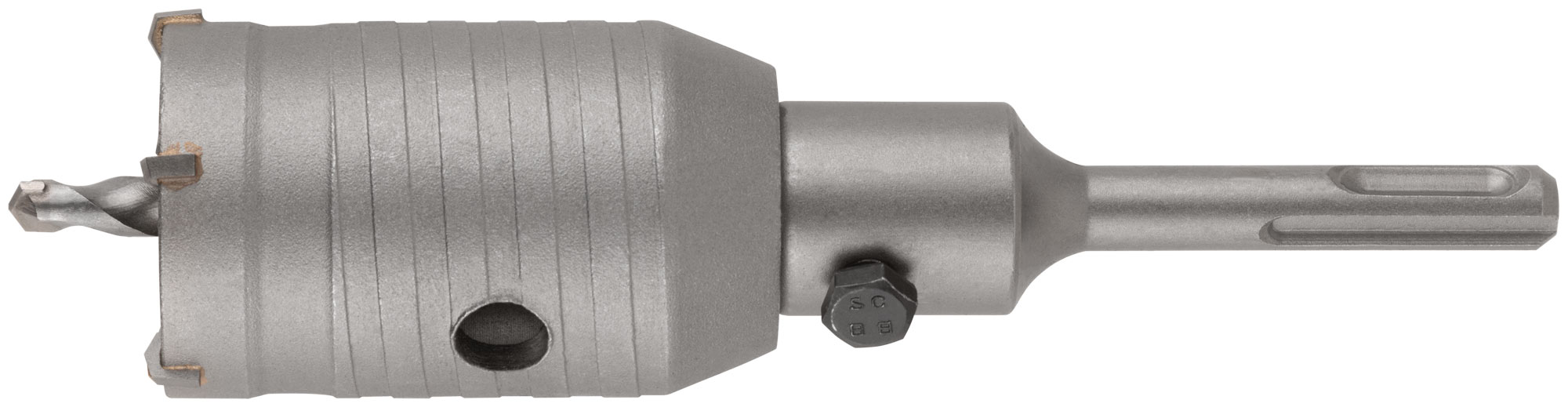Хвостовик 110 мм. В сборе. Для перфоратора. Для ударного сверления отверстий в бетонных, кирпичных и каменных стенах. Материал: хвостовик и центрирующее сверло легированная инструментальная сталь с добавлением хрома; корпус инструментальная сталь; твердосплавные резцы из карбида вольфрама. Упаковка: пластиковый подвес.