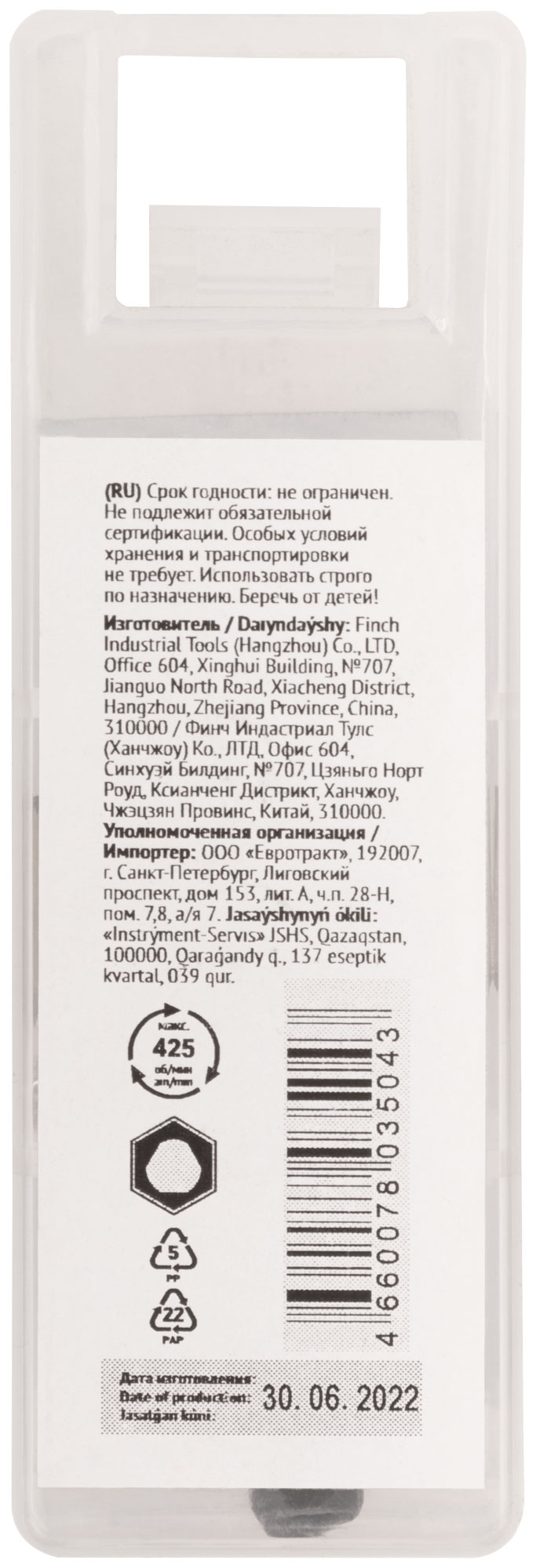 Для сверления отверстий в стали и цветных металлах до 2 мм. Максимальная глубина сверления до 14 мм. Трехгранный хвостовик. Материал: центрирующее сверло из быстрорежущей (HSS) стали, коронка из быстрорежущей (HSS) стали с титановым покрытием, хвостовик из инструментальной стали. Упаковка: пластиковая туба