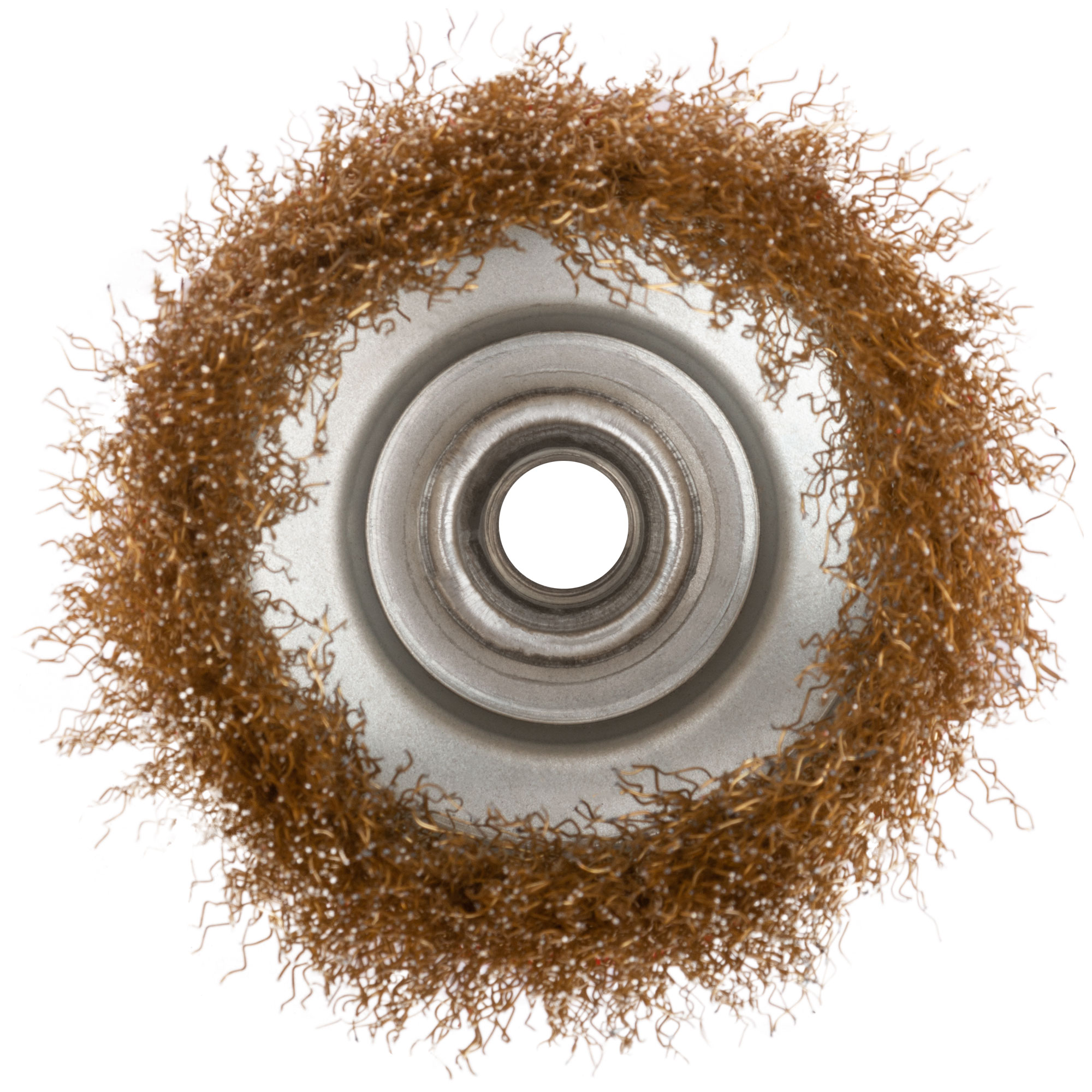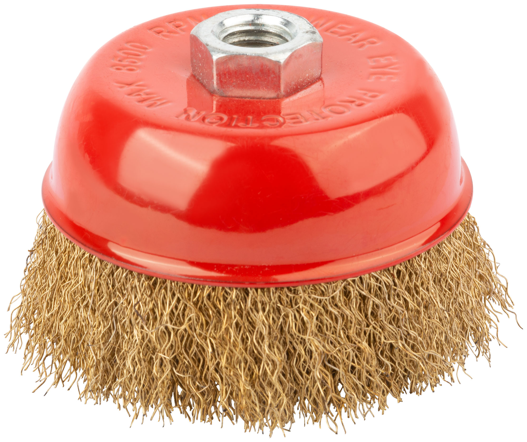 Корщетка чашечная, гайка М14, стальная латунированная волнистая проволока 100 мм