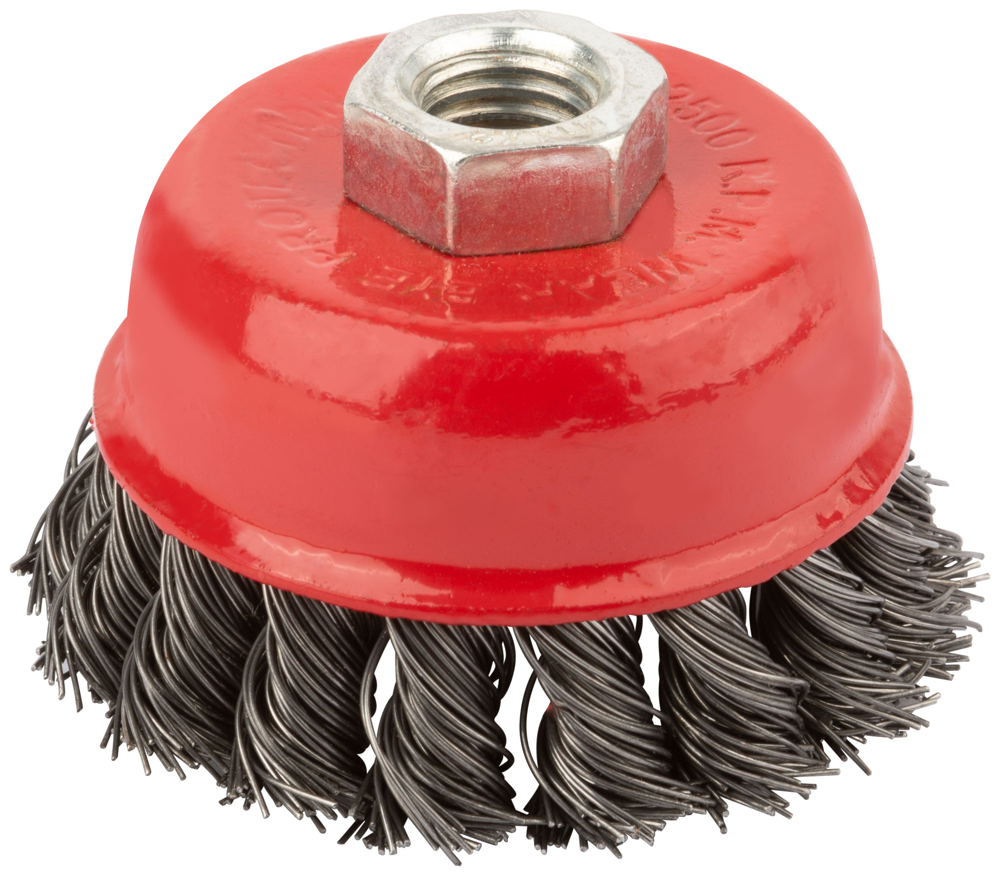 Корщетка чашечная, гайка М14, стальная витая проволока 75 мм