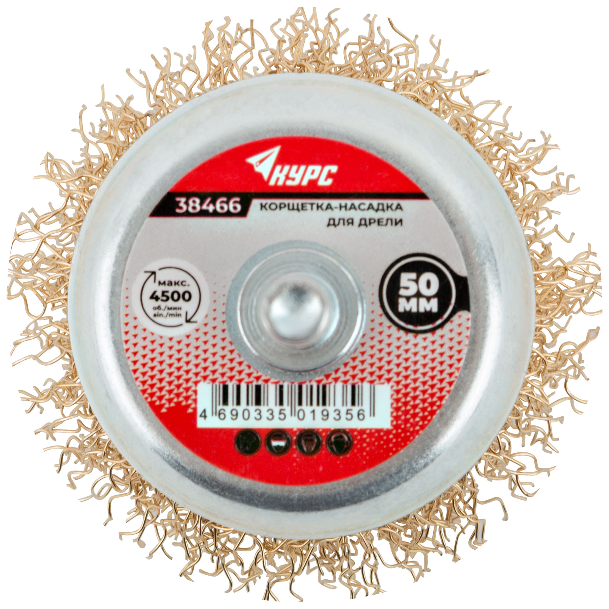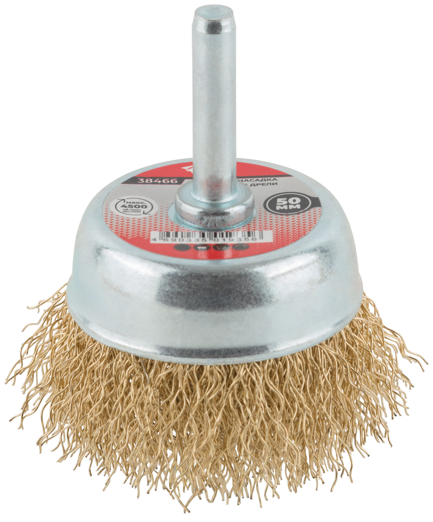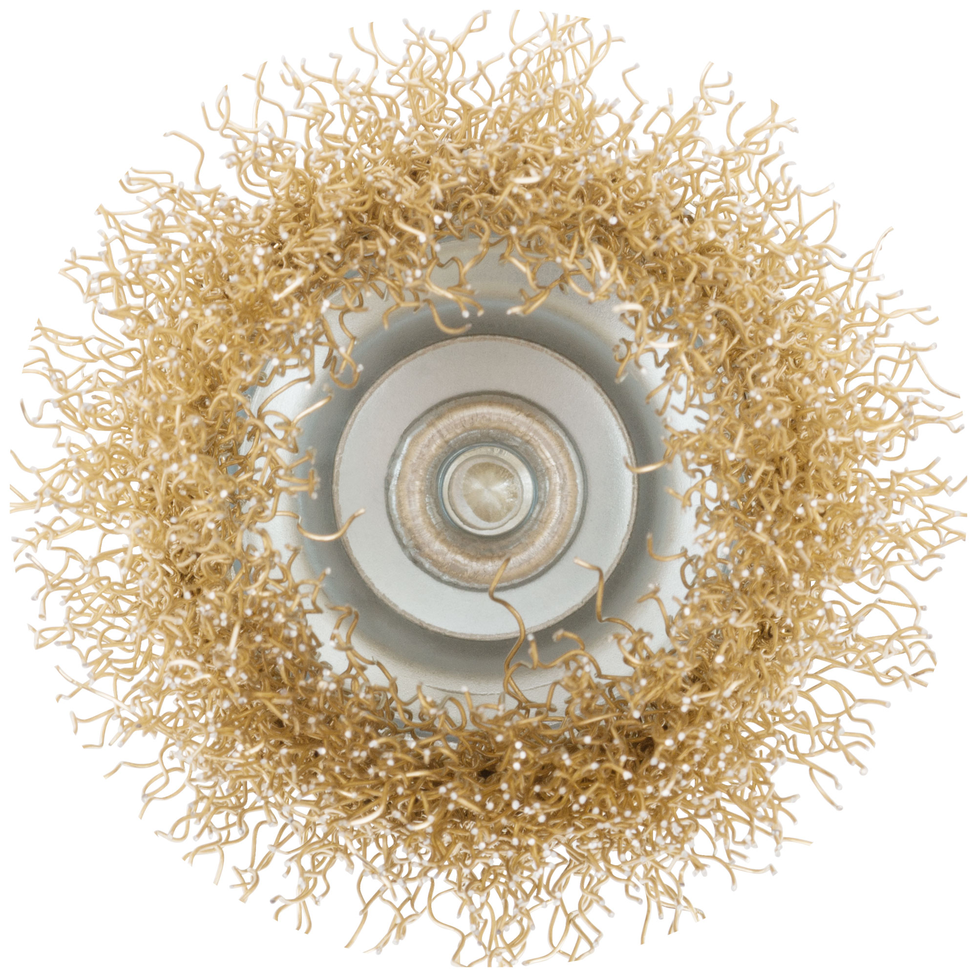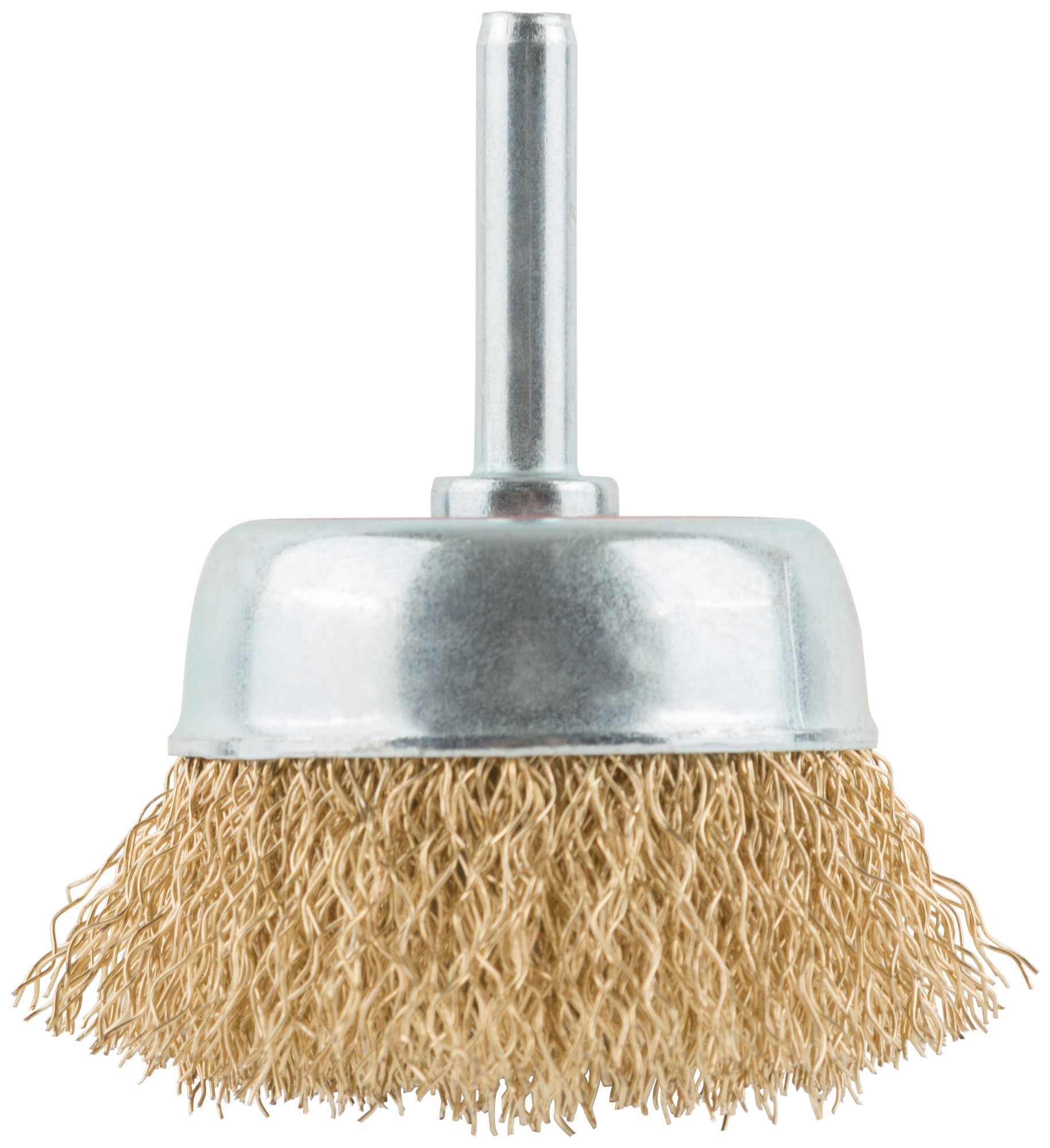 Корщетка чашечная, со шпилькой, стальная латунированная волнистая проволока 50 мм