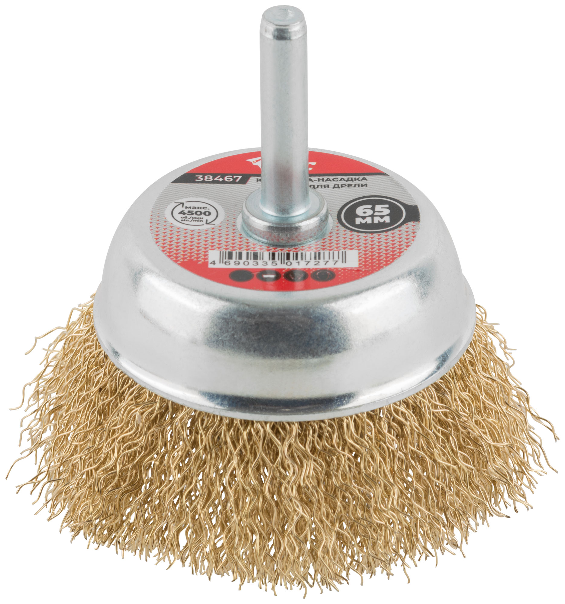 Корщетка чашечная, со шпилькой, стальная латунированная волнистая проволока 65 мм