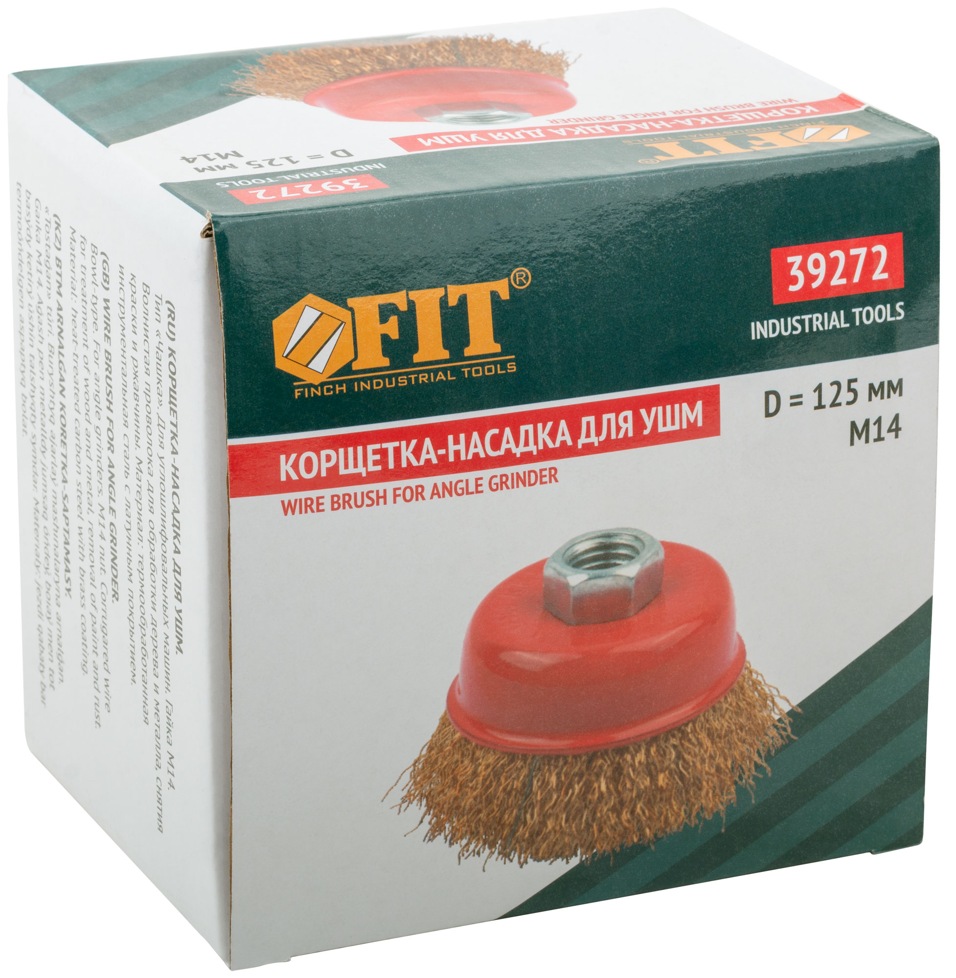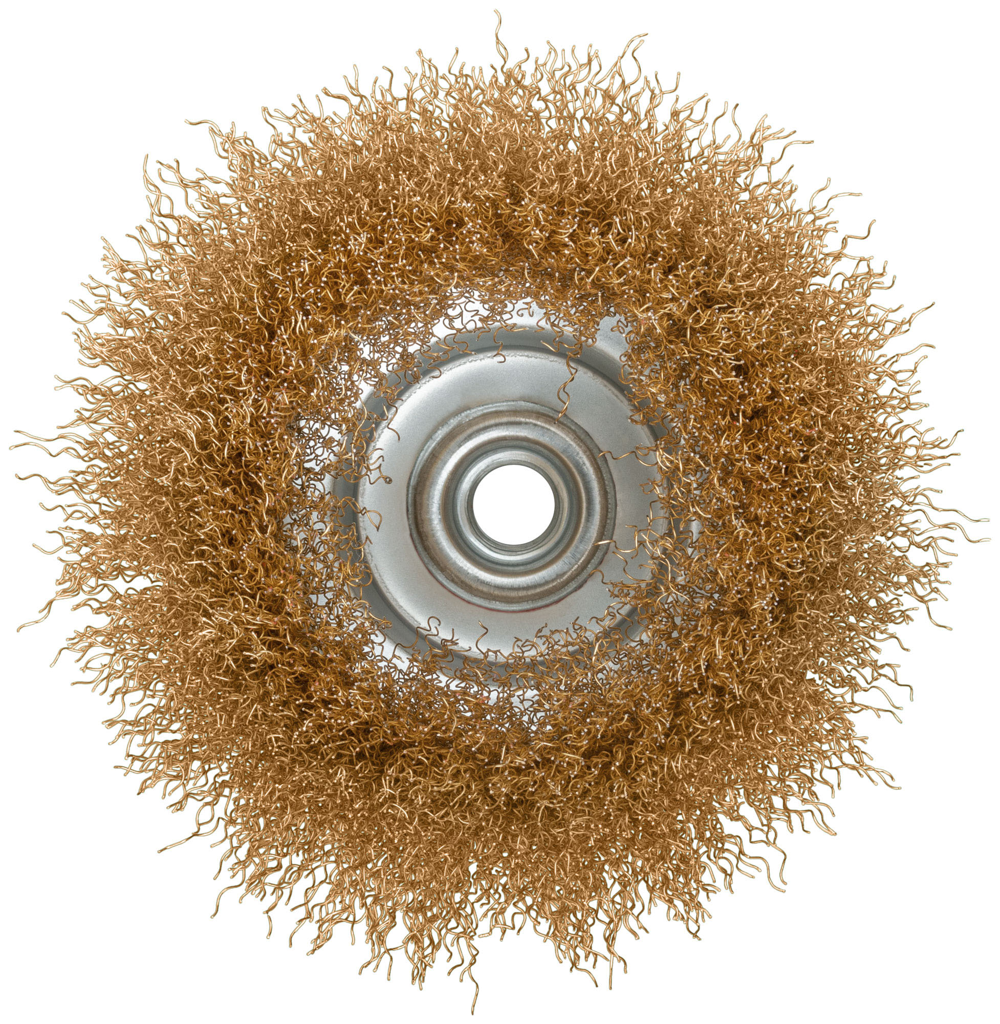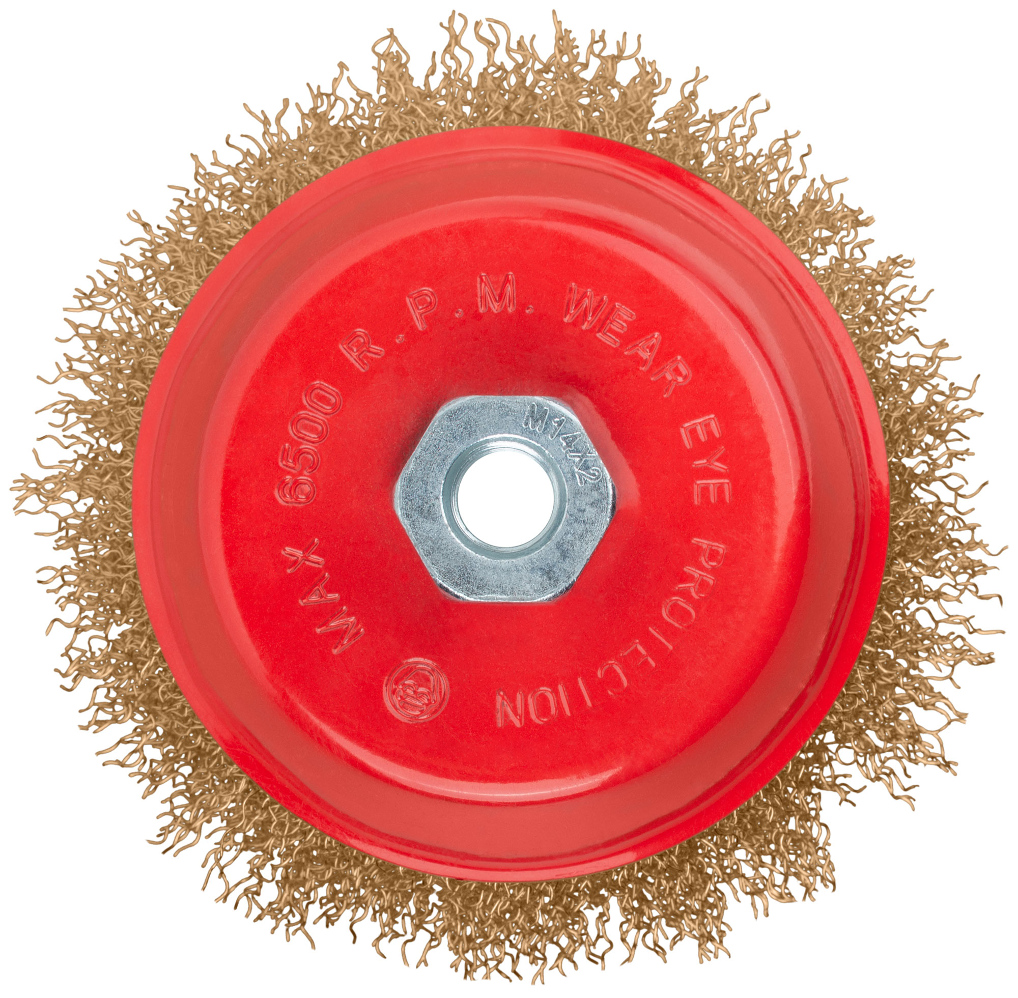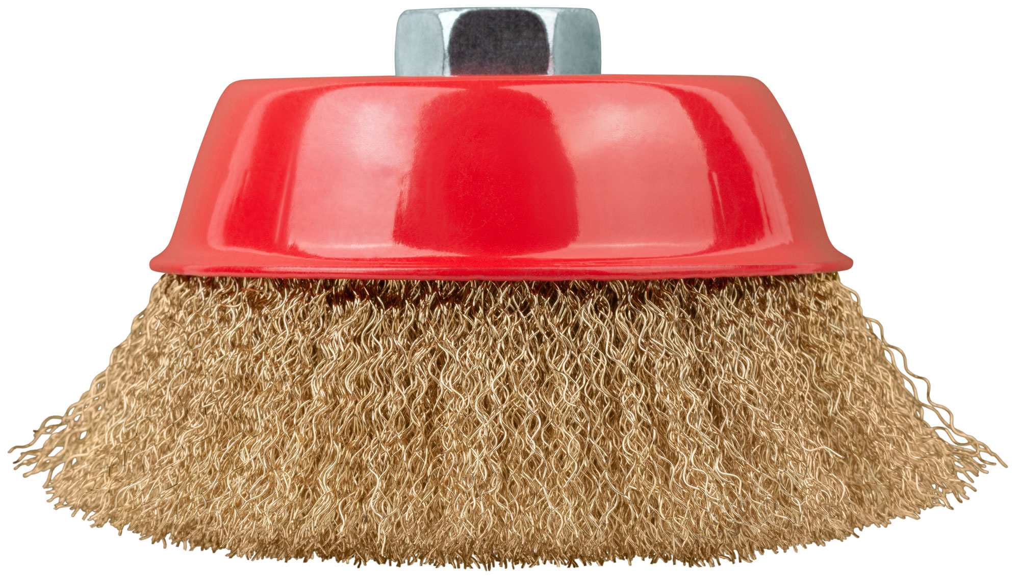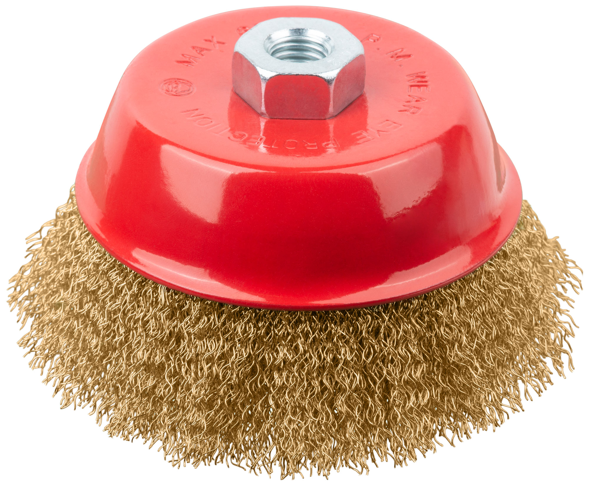 Корщетка-чашка, гайка М14, стальная латунированная волнистая проволока 125 мм