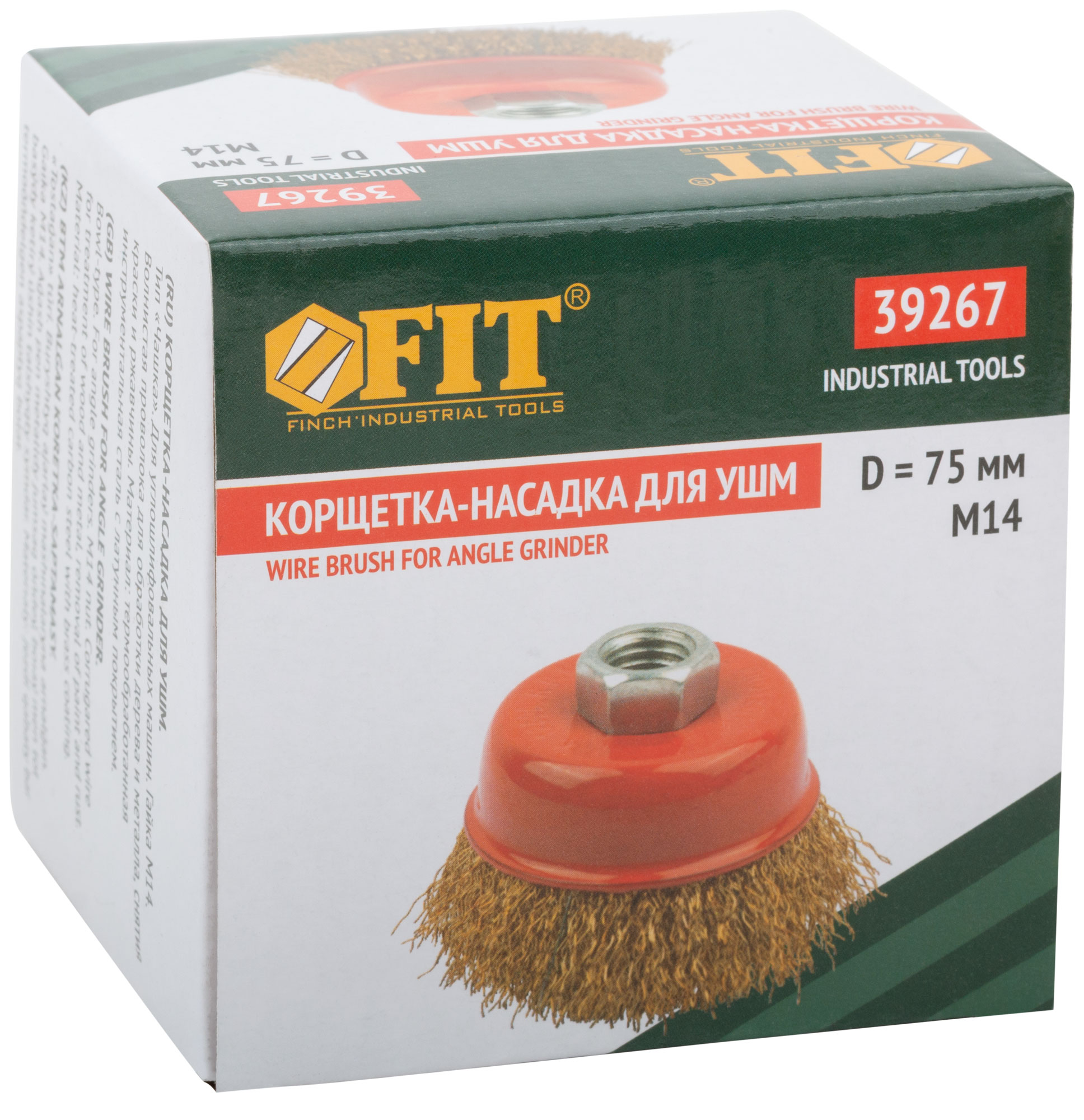 Тип «чашка», гайка М14. Для УШМ. Стальная латунированная, волнистая проволока. Упаковка: картонная коробка.