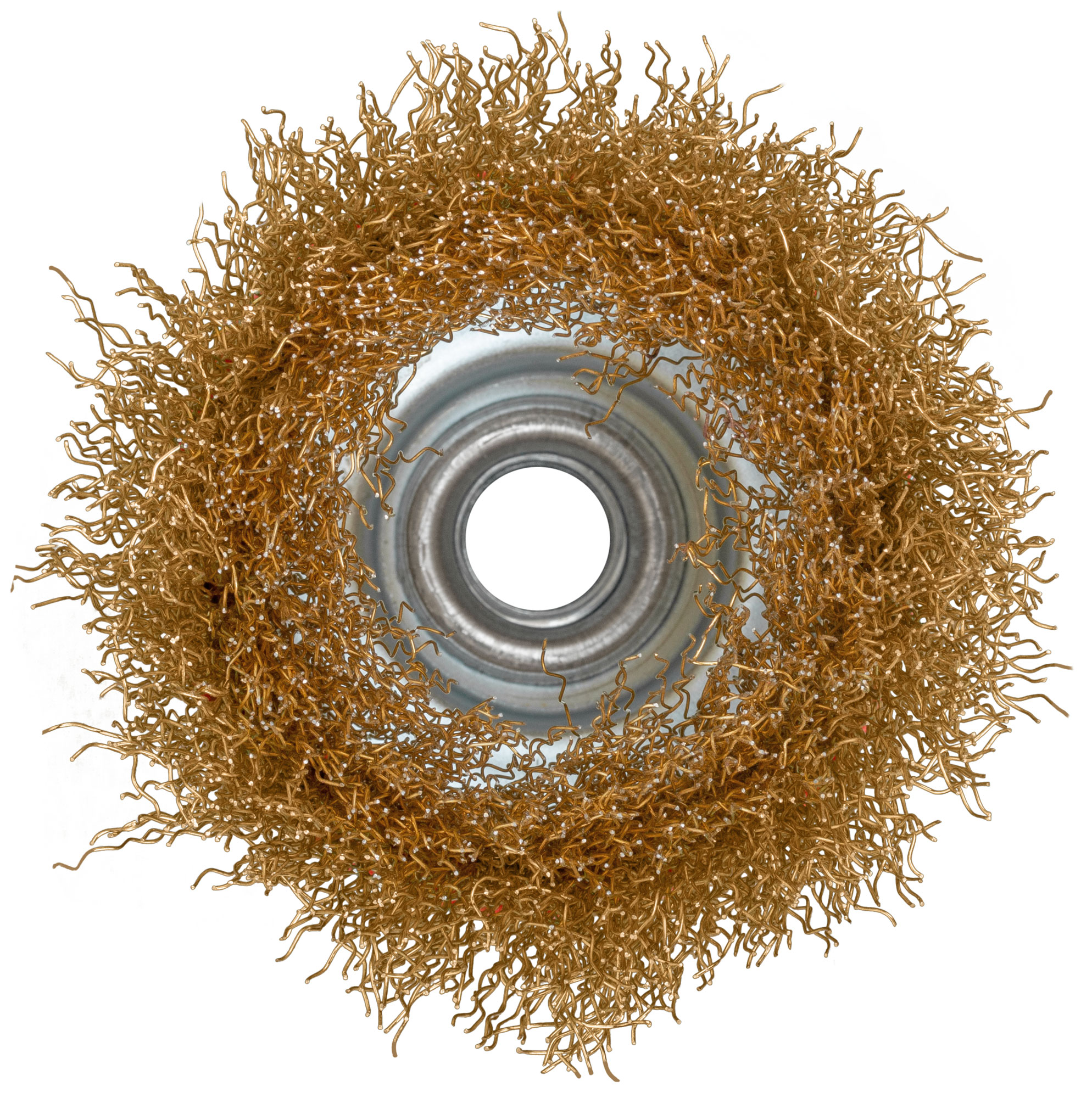 Корщетка-чашка, гайка М14, стальная латунированная волнистая проволока 75 мм