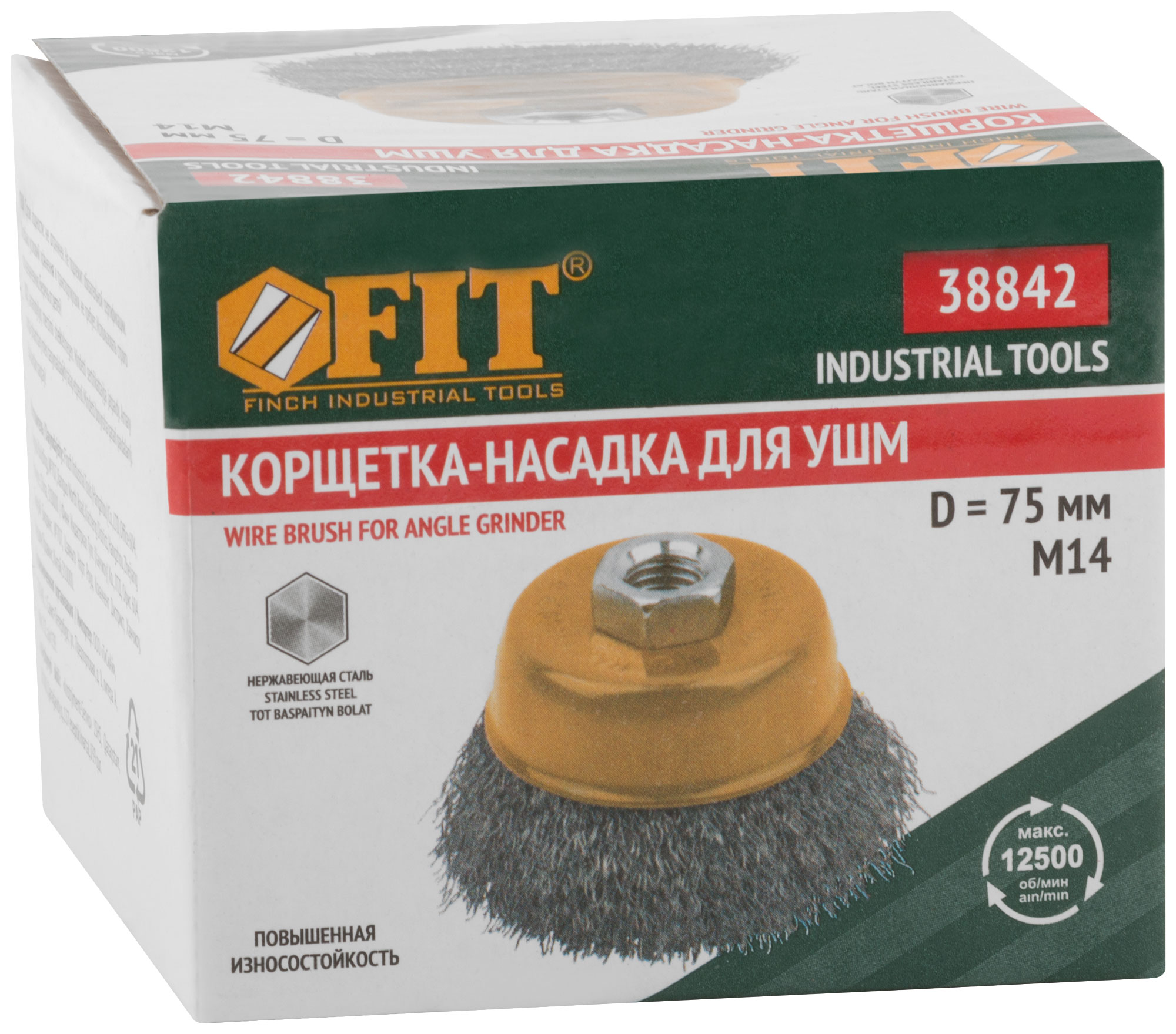 Корщетка-чашка, гайка М14, волнистая проволока, нержавеющая сталь 75 мм