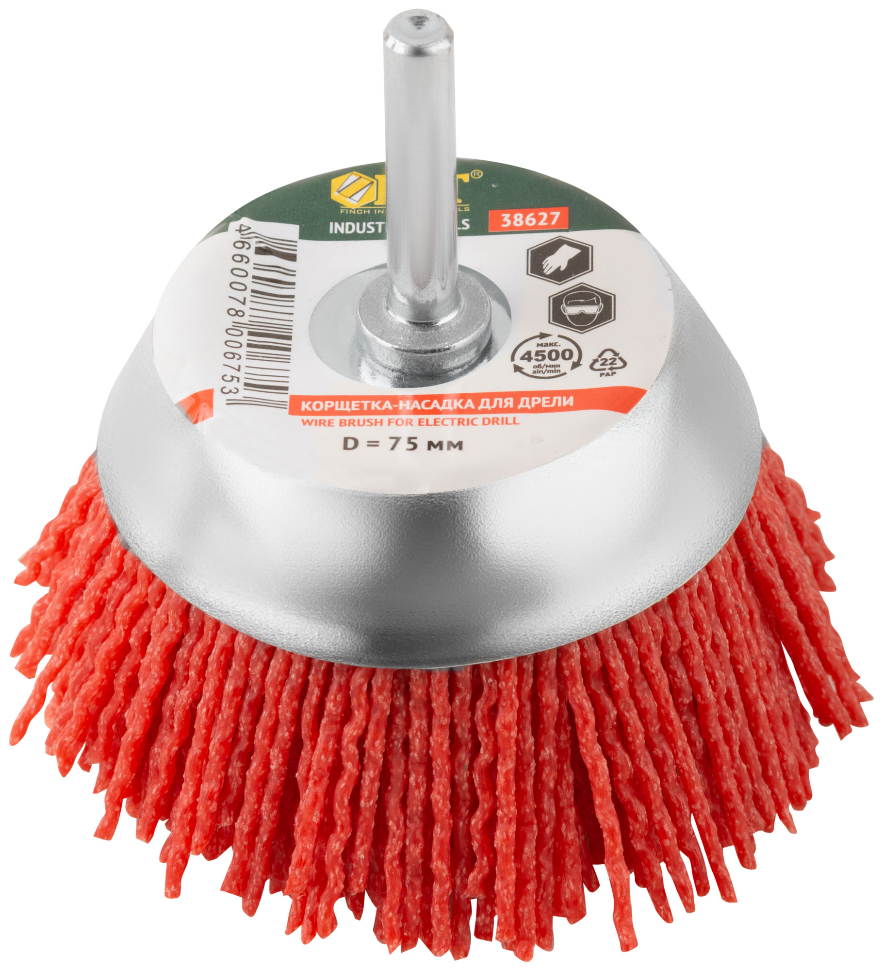 Корщетка-чашка нейлоновая со штифтом 75 мм