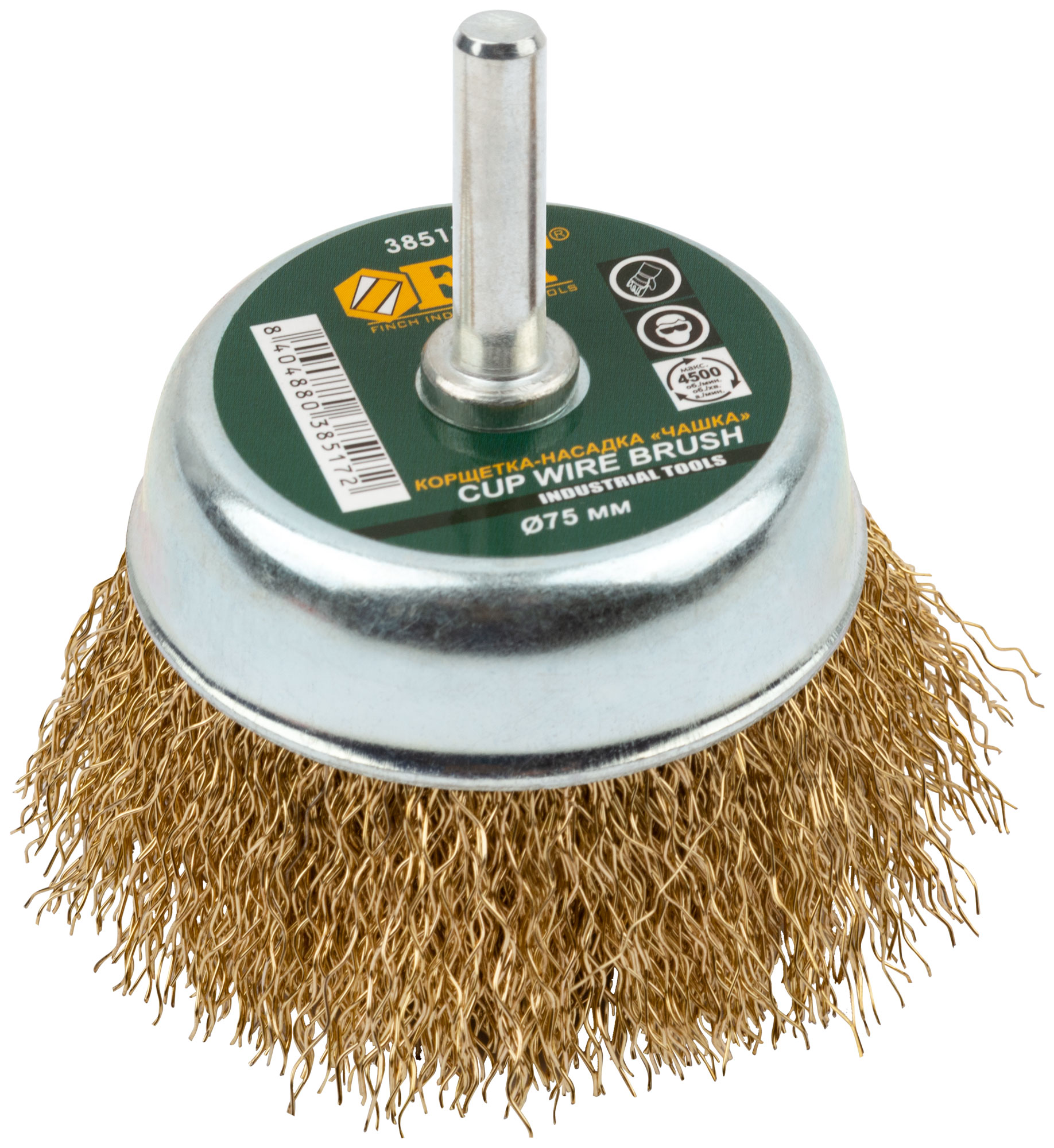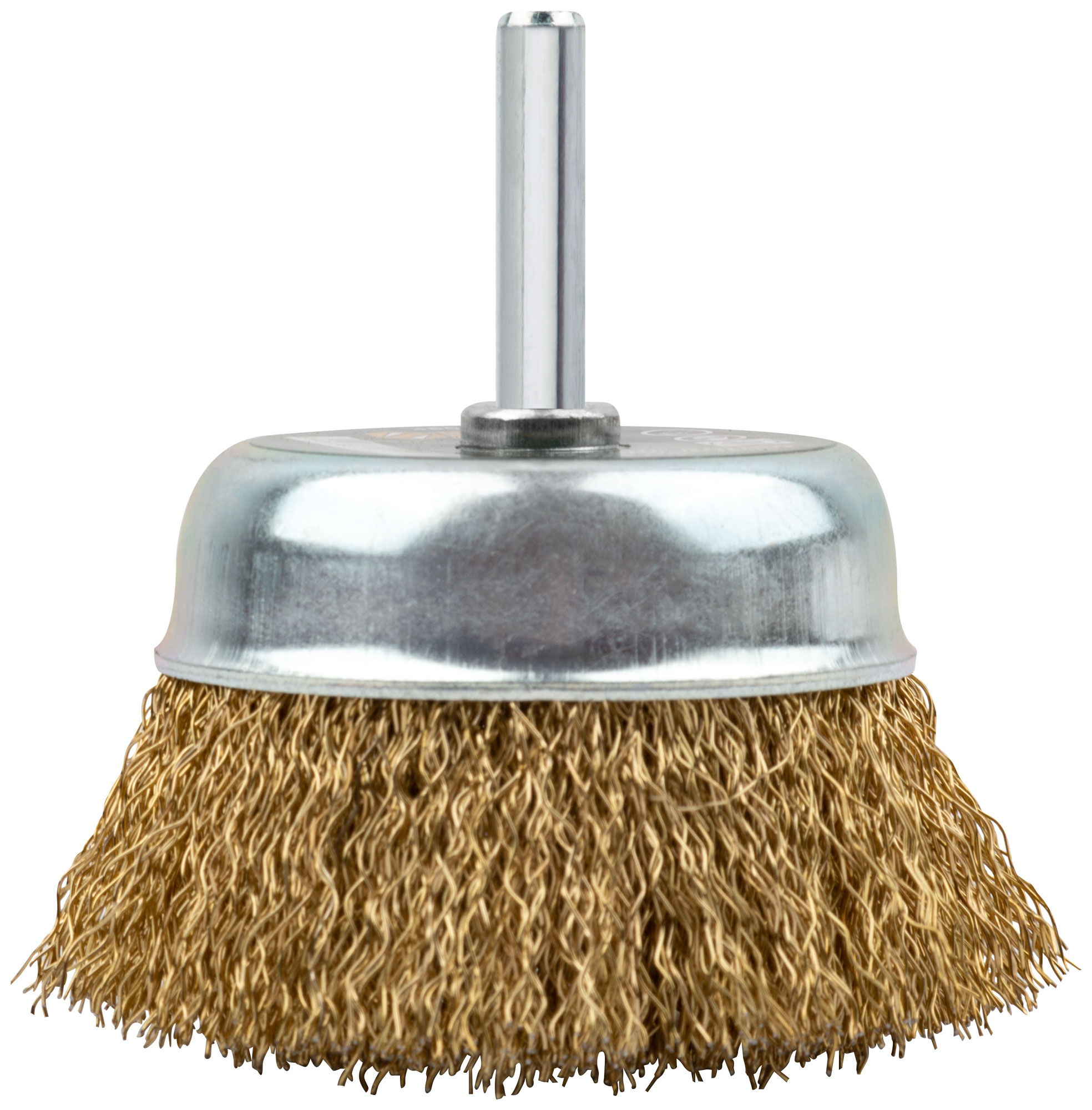 Корщетка-чашка, со штифтом, стальная латунированная волнистая проволока 75 мм