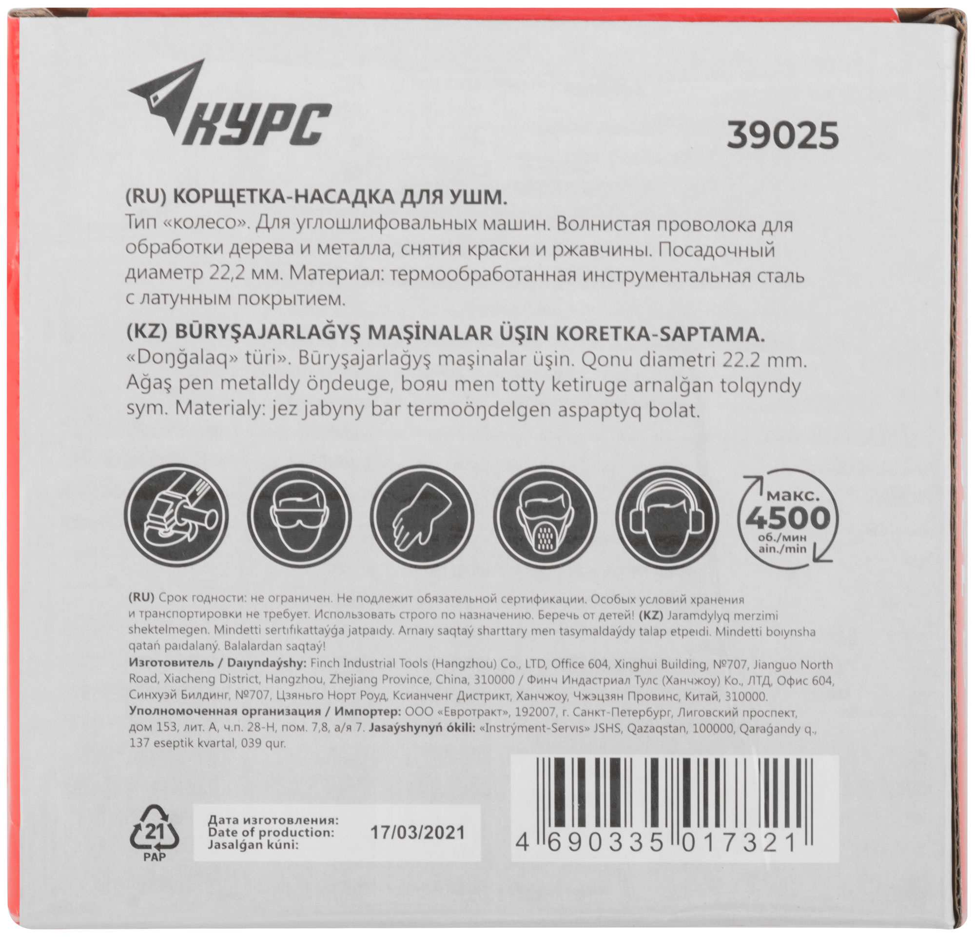 Дисковая прямая. Для УШМ. Посадочный диаметр 22,2 мм. Материал: стальная латунированная проволока. Упаковка: картонная коробка.