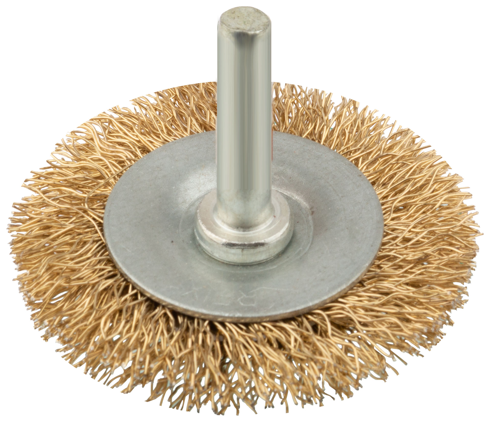 Корщетка дисковая прямая, со шпилькой, стальная латунированная волнистая проволока 50 мм
