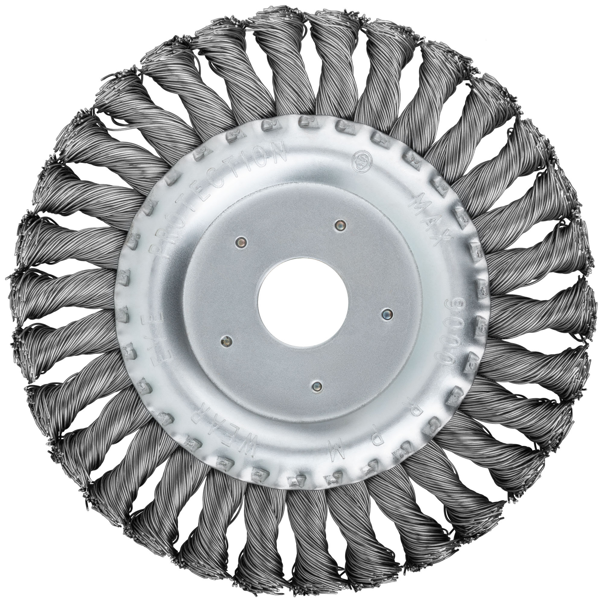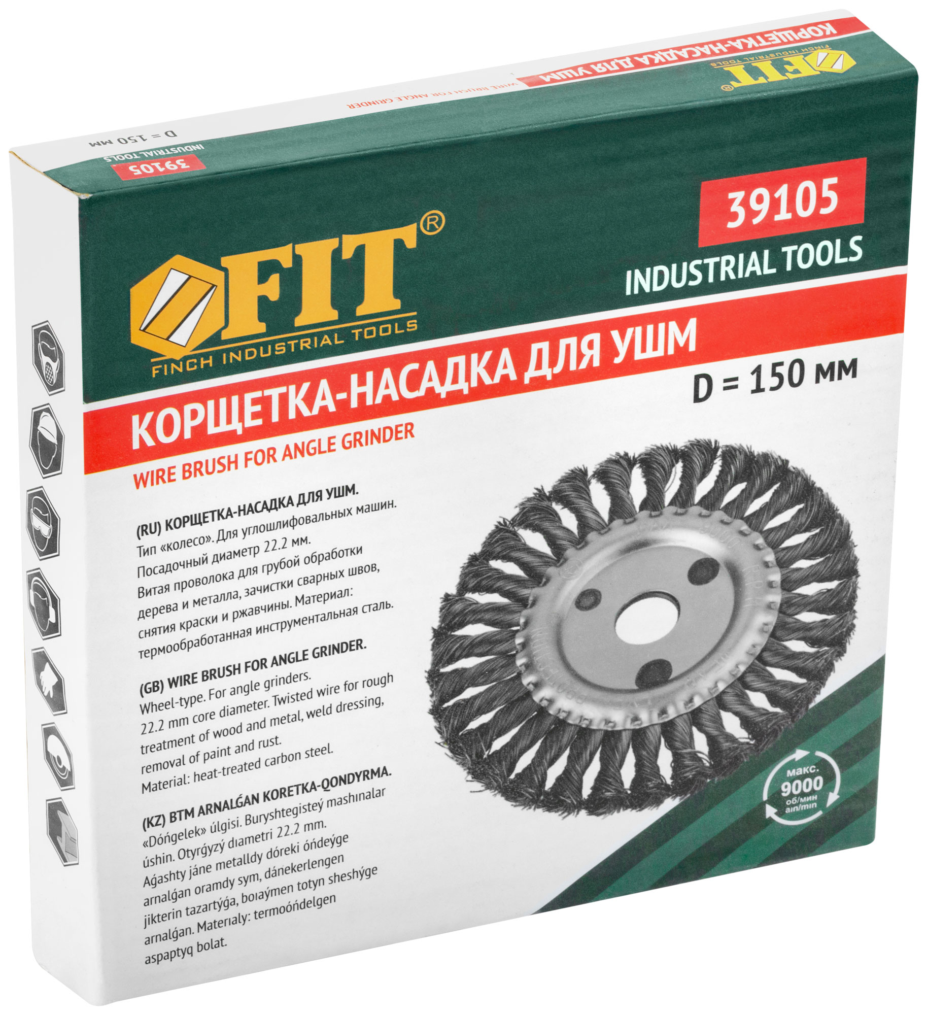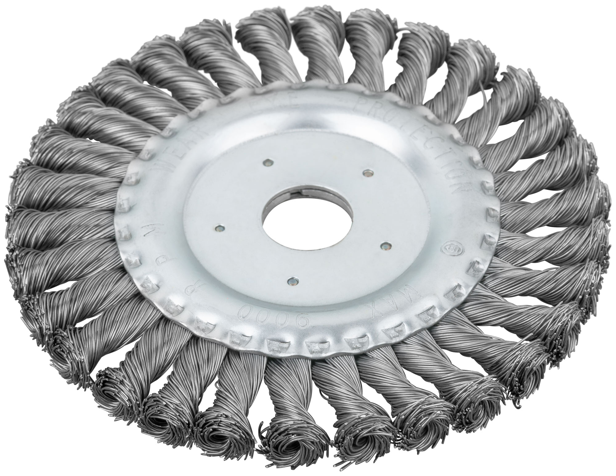 Тип «колесо». Для УШМ. Витая стальная проволока. Посадочный диаметр – 22,2 мм. Упаковка: картонная коробка.