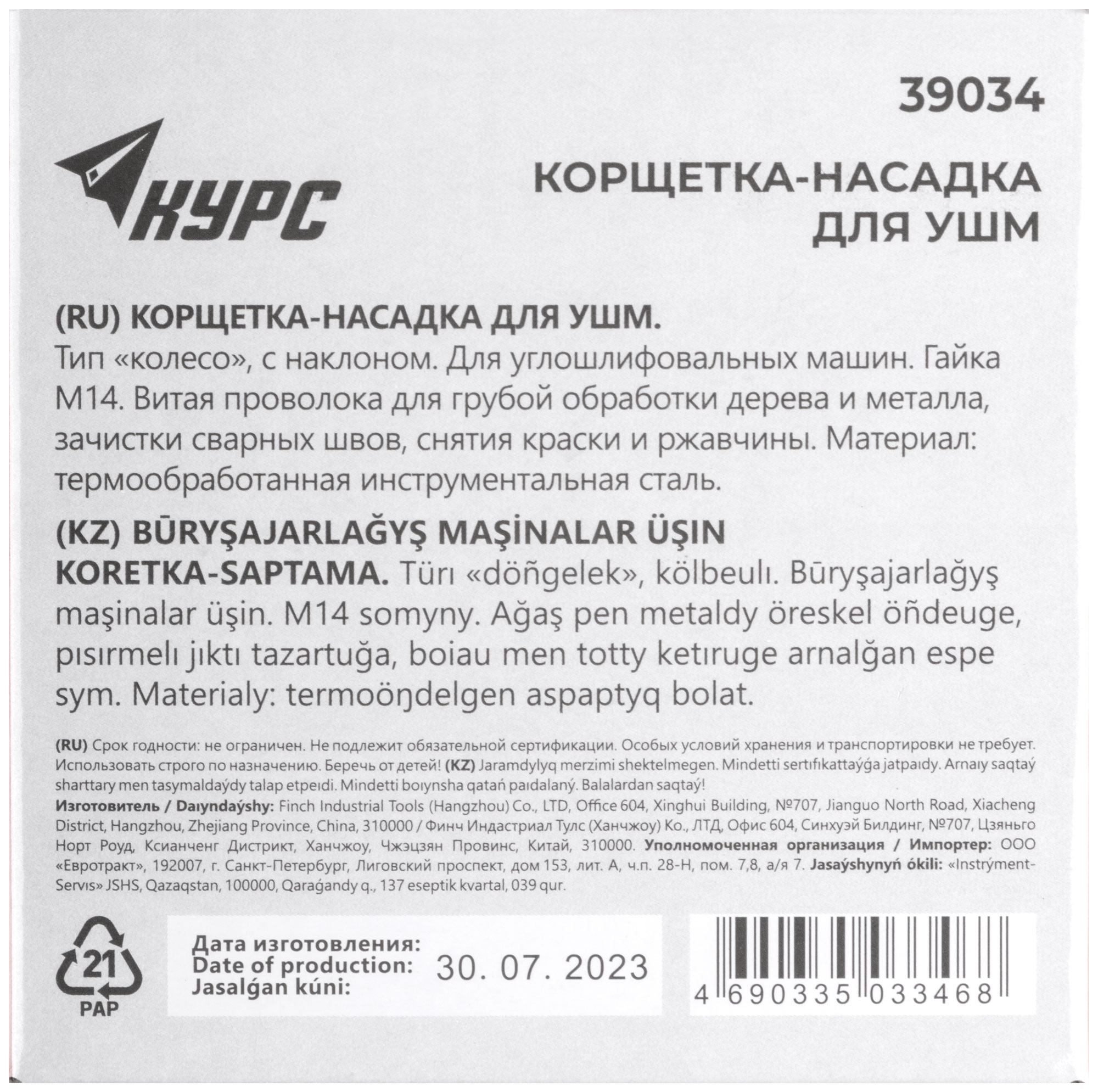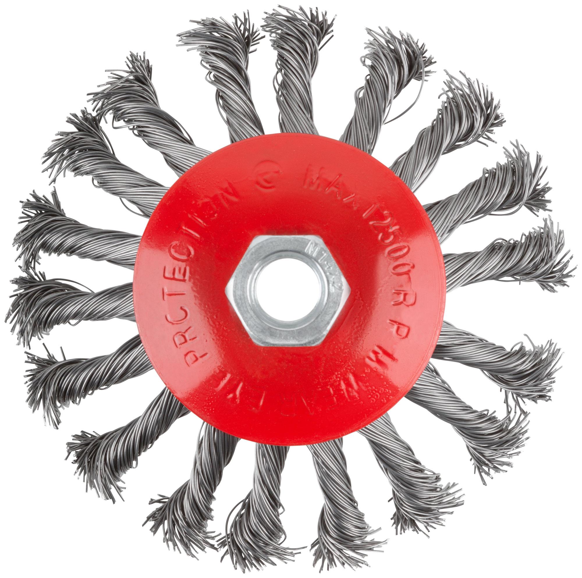 Тип "колесо", с наклоном. Для УШМ. Гайка М14. Материал: стальная витая проволока. Упаковка: картонная коробка.