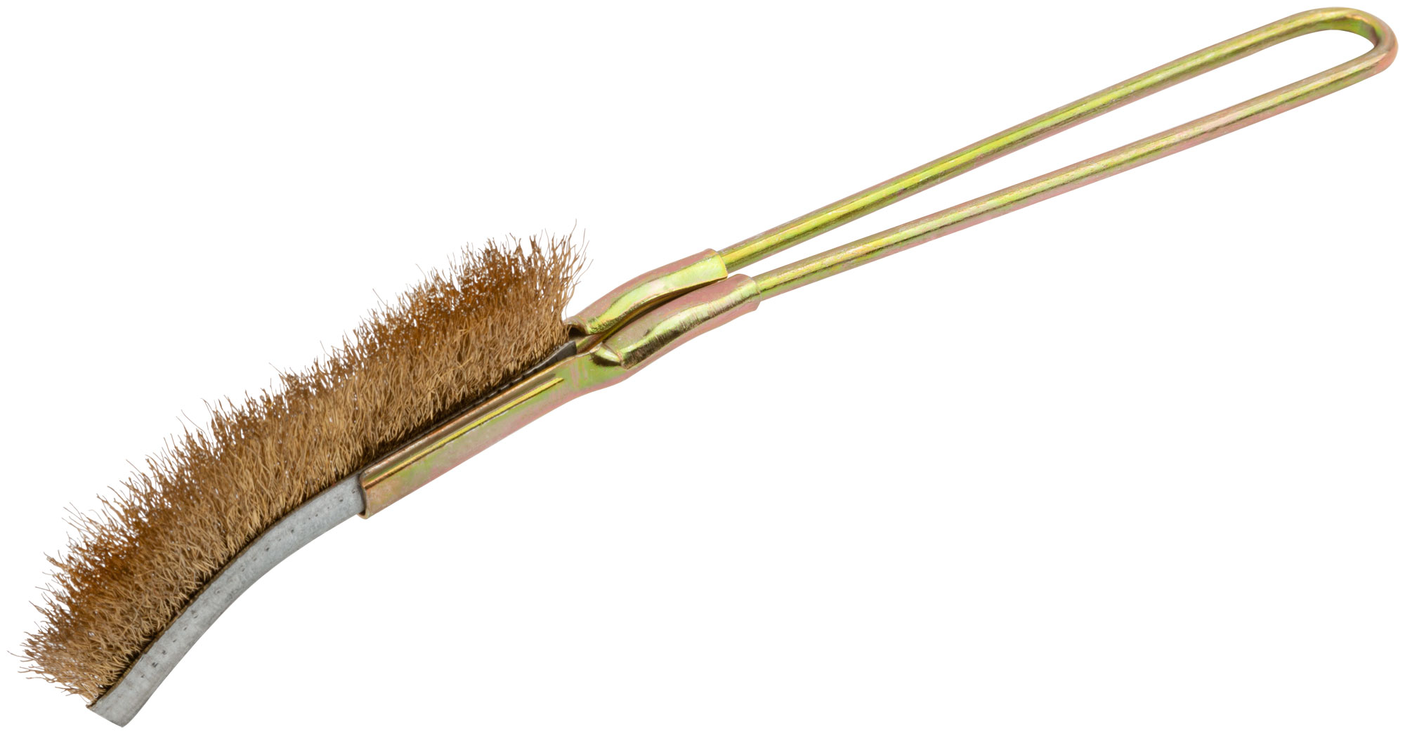 Корщетка мини изогнутая. Для снятия старой краски, ржавчины, зачистки мелких деталей, в т.ч. в труднодоступных местах. Стальная латунированная проволока.