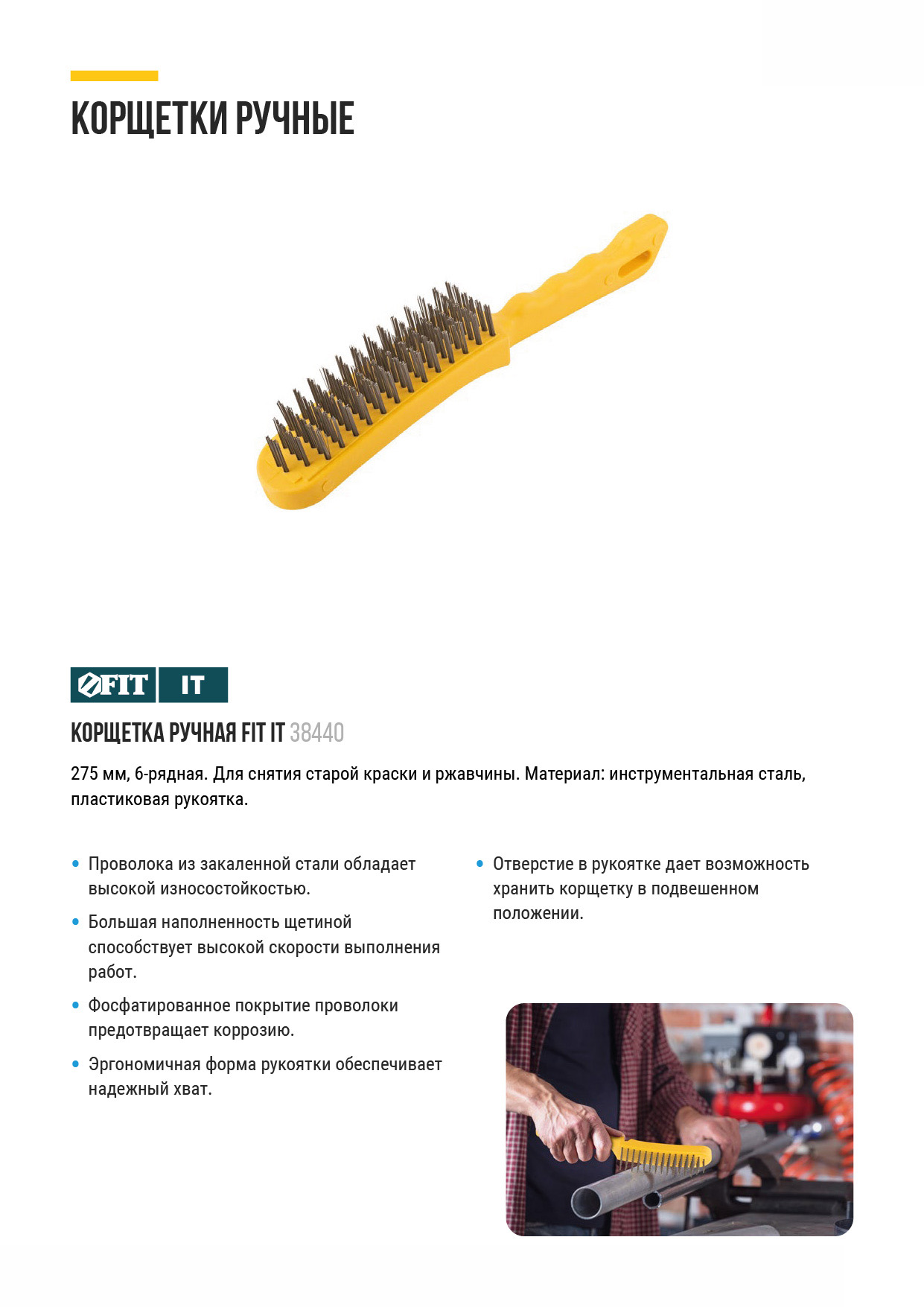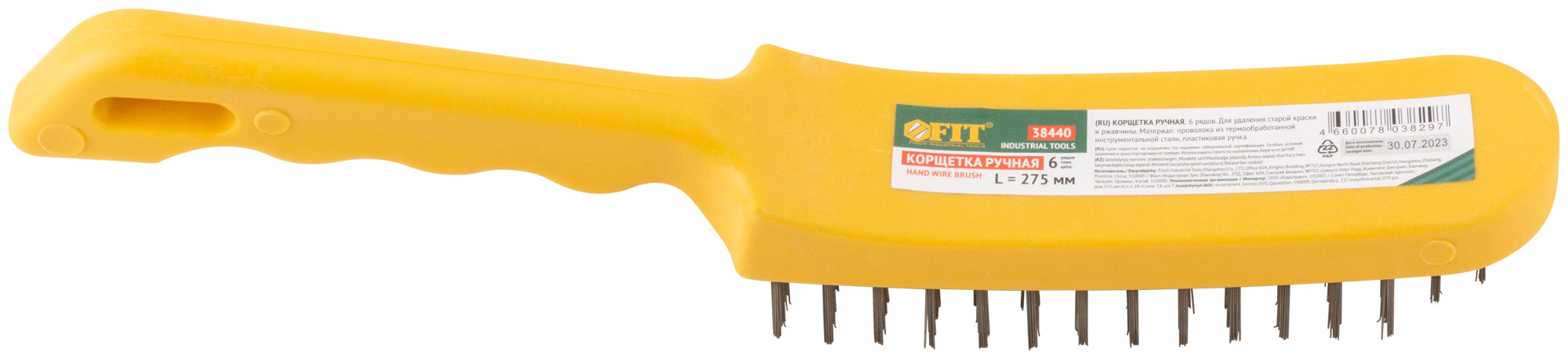 Корщетка стальная, желтая пластиковая ручка, 275 мм, 6-ти рядная