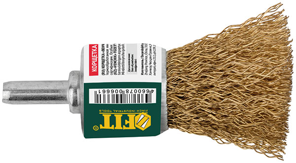 Корщетка-венчик, со штифтом, стальная латунированная волнистая проволока 25 мм