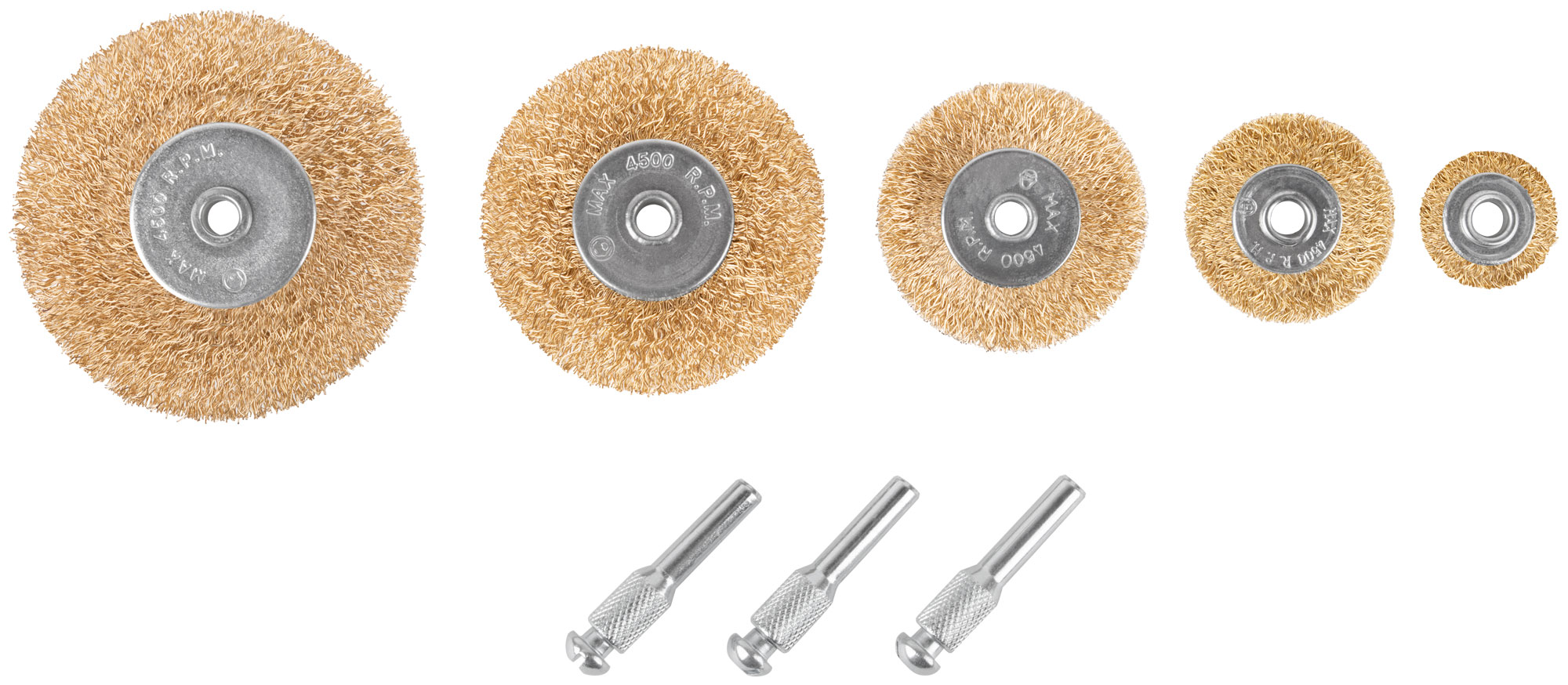 Корщетки со штифтом, набор 5 шт. ( колеса 25 / 38 / 50 / 63 / 75 мм )