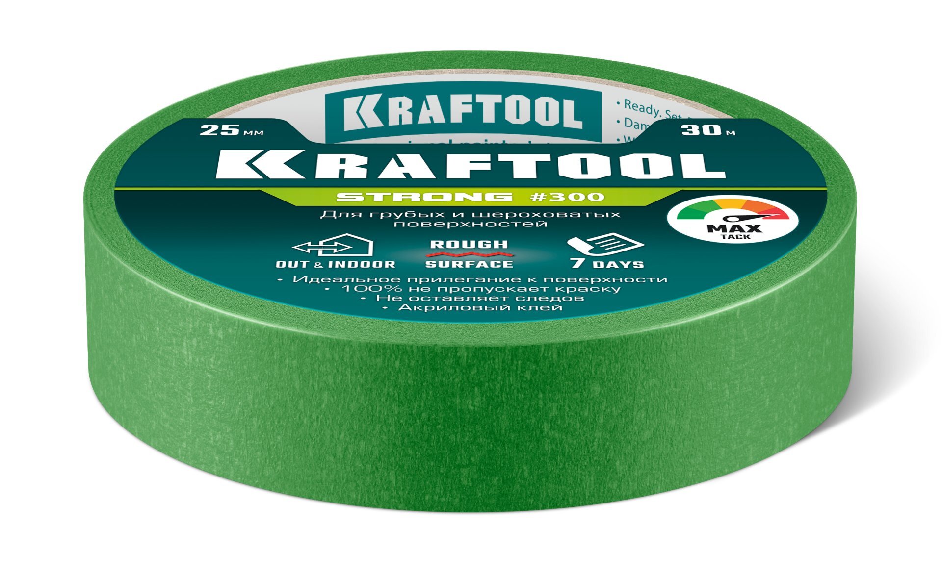 KRAFTOOL #300 Strong 25 мм х 30 м, для грубых и шероховатых поверхностей, малярная лента (12103-25)