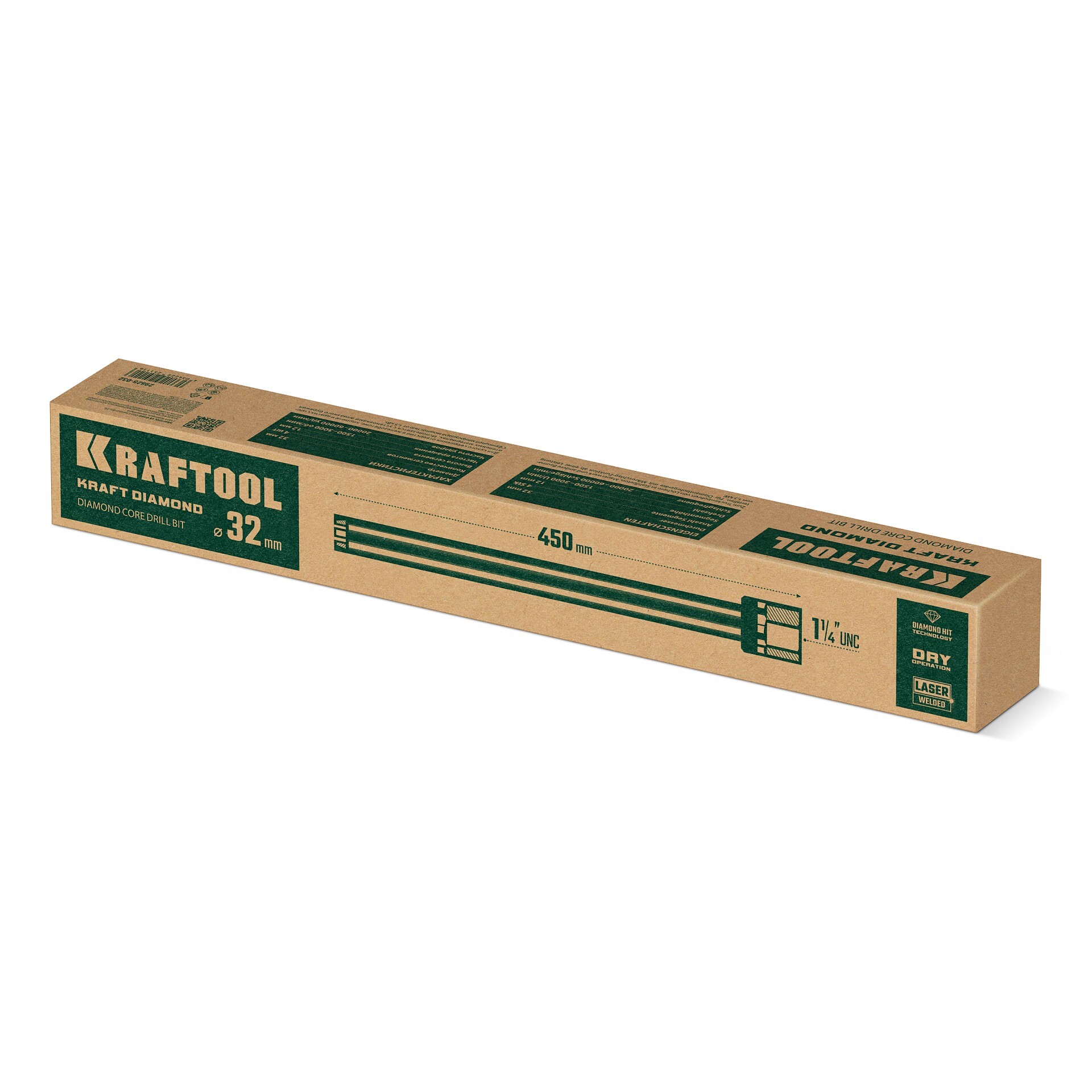 KRAFTOOL DIAMOND 32 мм (450 мм, 1 1/4″, лазерная сварка сегментов), Алмазная Коронка по железобетону (29825-032)