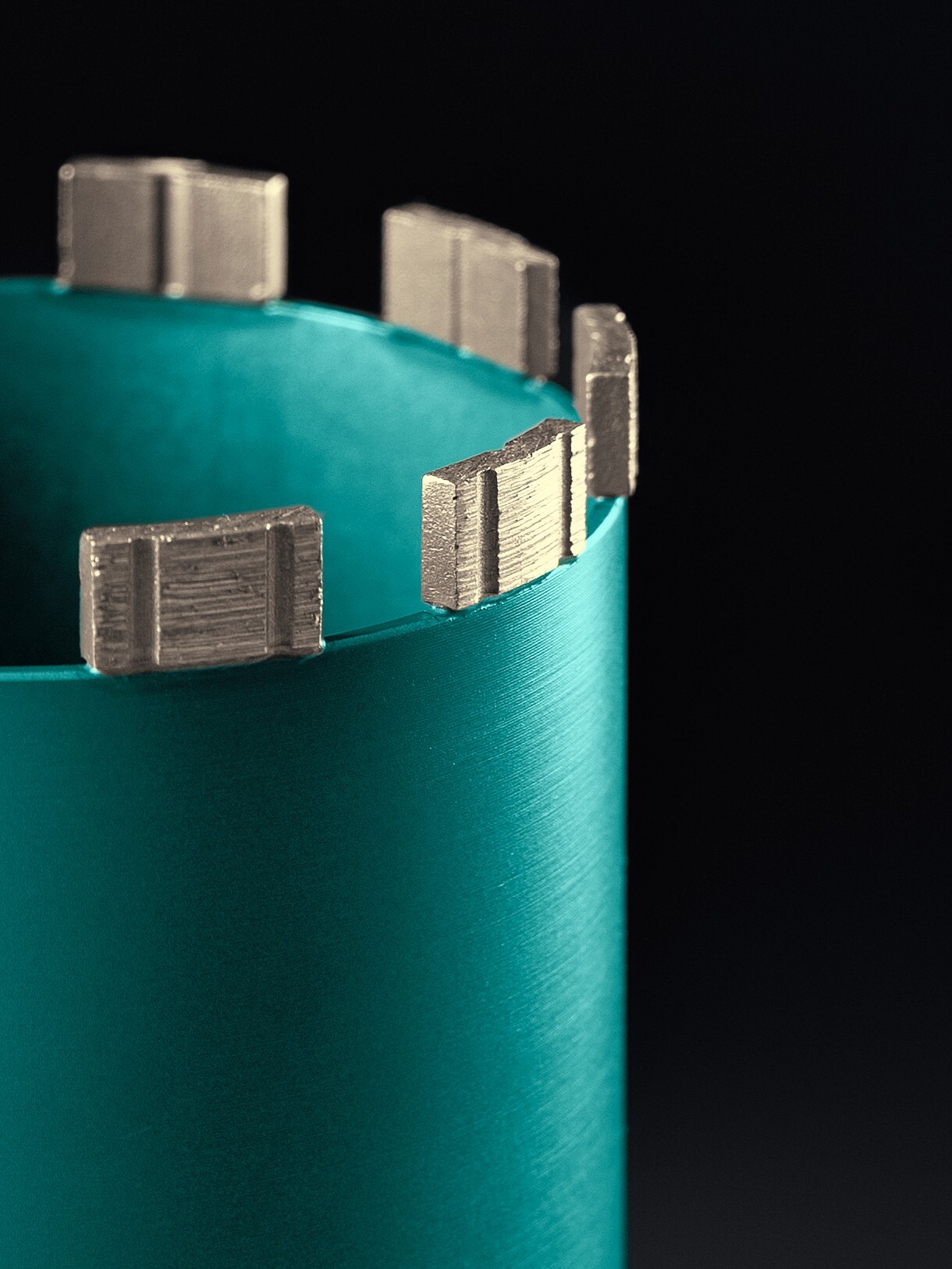 Для сухого сверления отверстий в железобетоне, кирпиче и других строительных материалах. Используются с установками алмазного бурения с функцией микроудара мощностью от 1,5 кВт.